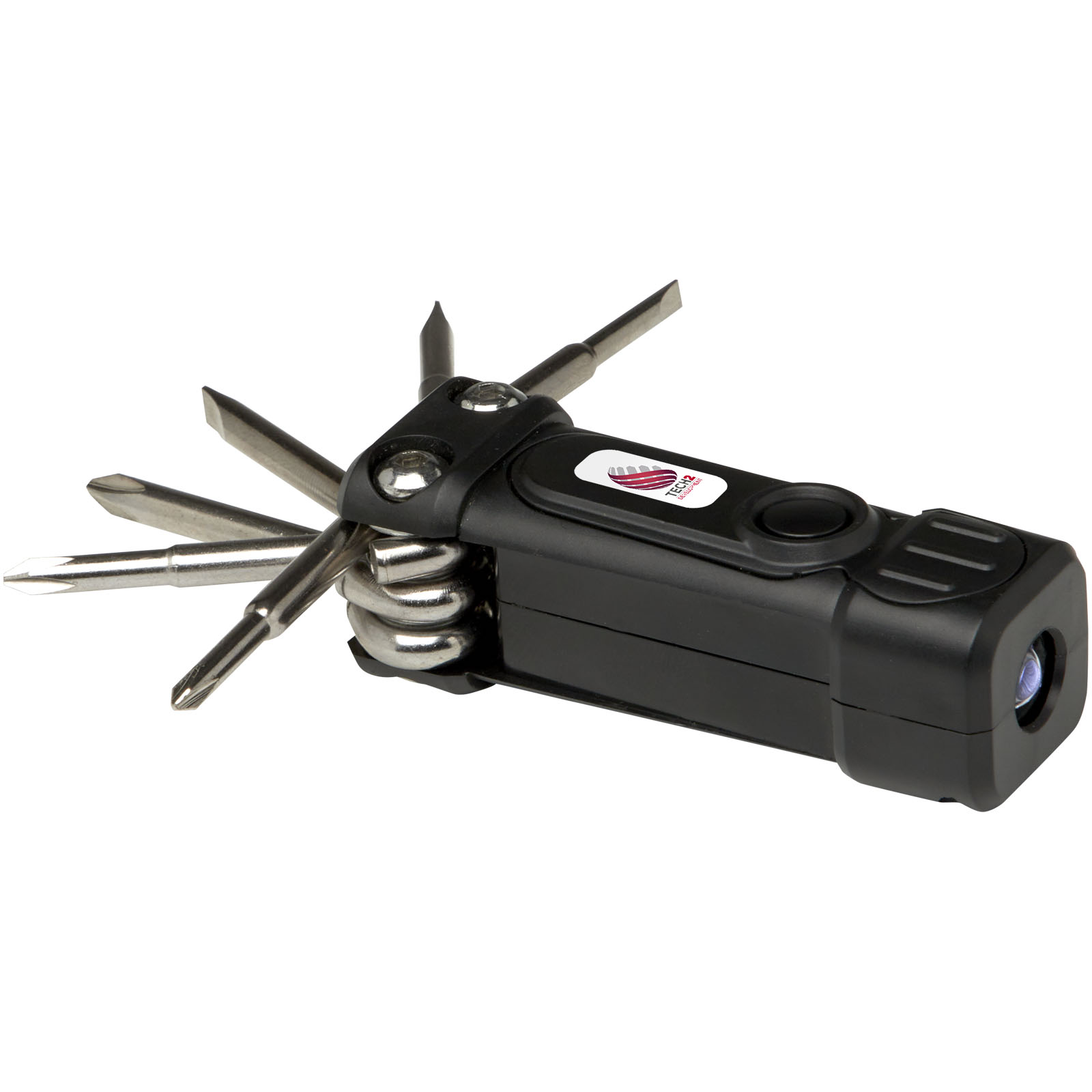 Kompaktowy zestaw wkrętaków 8 w 1 z latarką wykonany w 20% z tworzyw sztucznych pochodzących z recyklingu z certyfikatem RCS. Recycled Claim Standard (RCS) weryfikuje zawartość surowców wtórnych w produkcie w całym łańcuchu dostaw. To praktyczne narzędzie posiada 2 diody LED, 3 głowice krzyżakowe i 3 głowice płaskie. Dostarczane z trzema bateriami LR44 w zestawie. Zapakowany w pudełko upominkowe STAC pochodzące ze zrównoważonych źródeł.