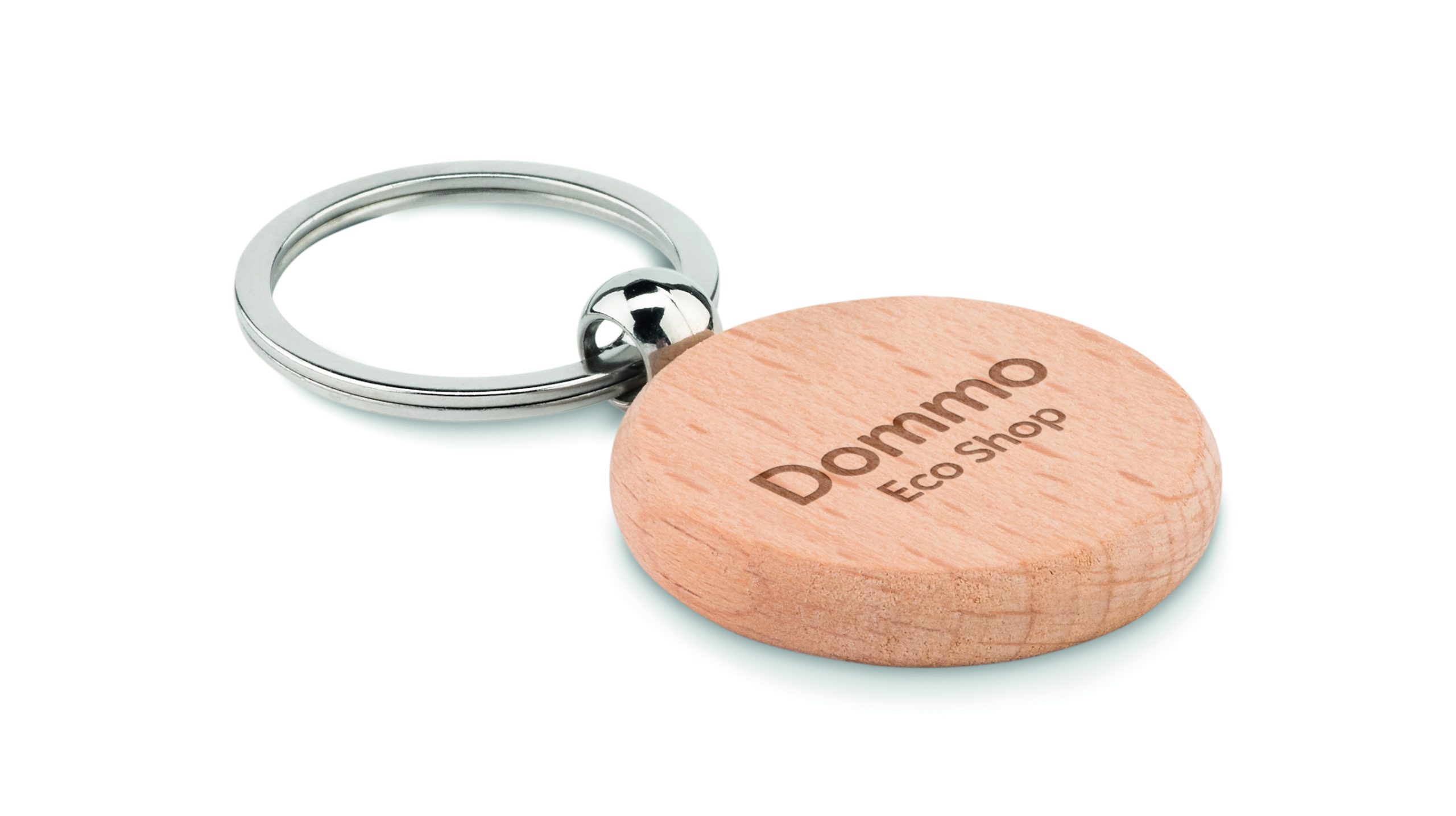 Okrągły drewniany brelok do kluczy. Drewno jest produktem naturalnym, mogą występować niewielkie różnice w kolorze i rozmiarze poszczególnych elementów, co może mieć wpływ na ostateczny efekt zdobienia.