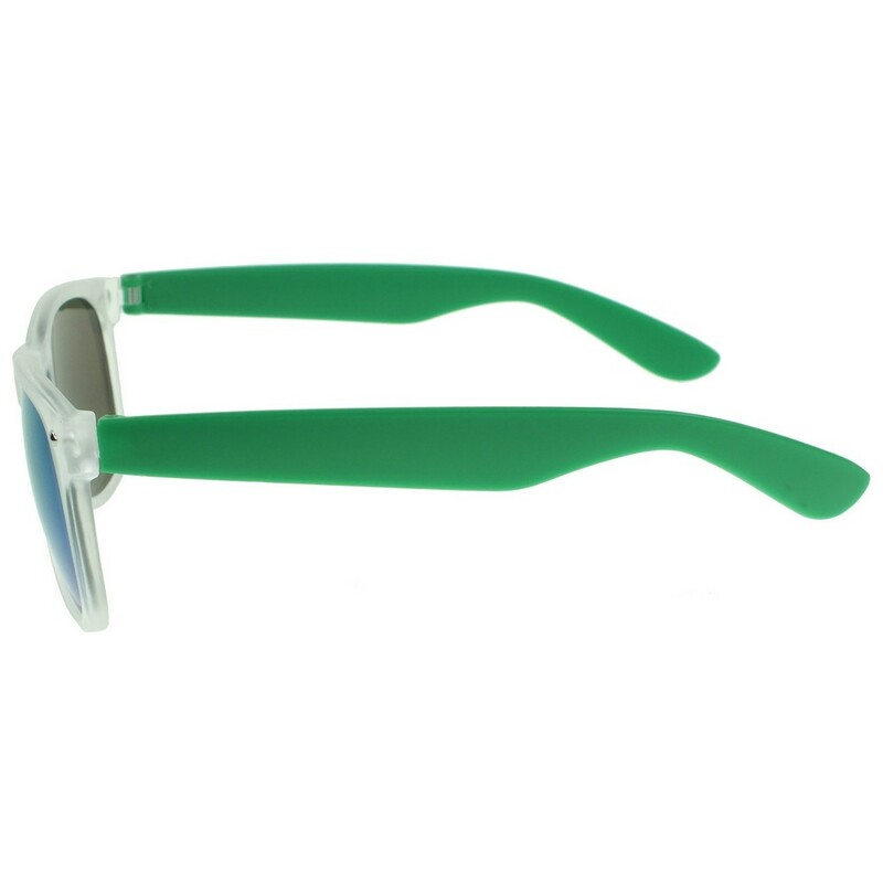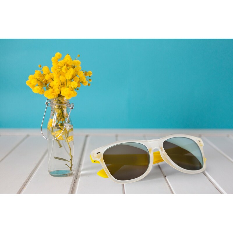 Okulary przeciwsłoneczne z filtrem UV400, posiadają lustrzane szkła i oprawki o matowym wykończeniu, produkt wykonany z PC i AC