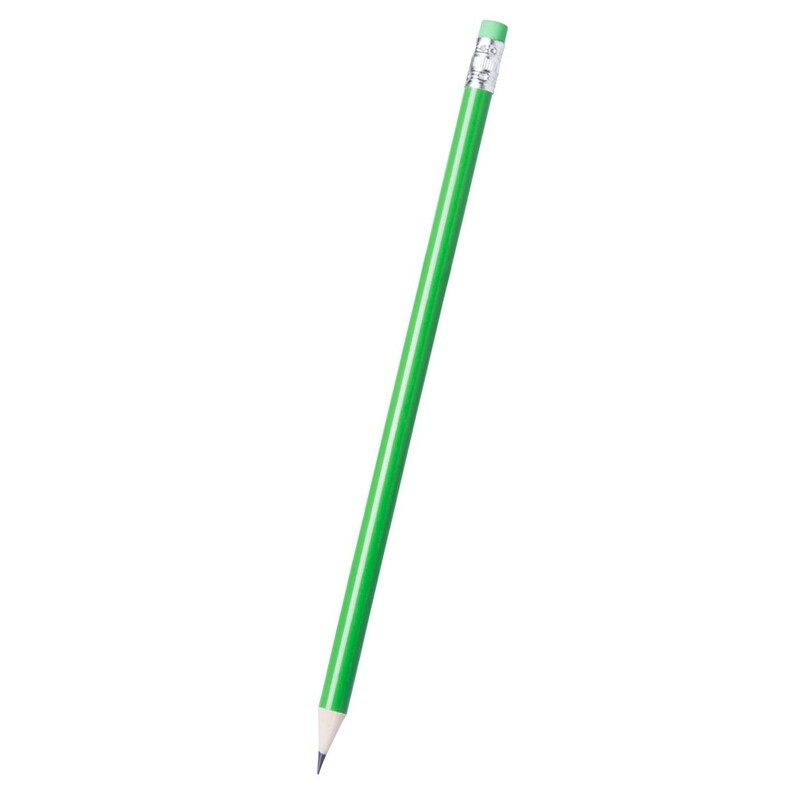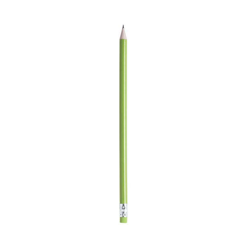 Ołówek z błyszczącym wykończeniem i dopasowaną kolorystycznie gumką, posiada naostrzoną końcówkę, produkt wykonany z drewna
