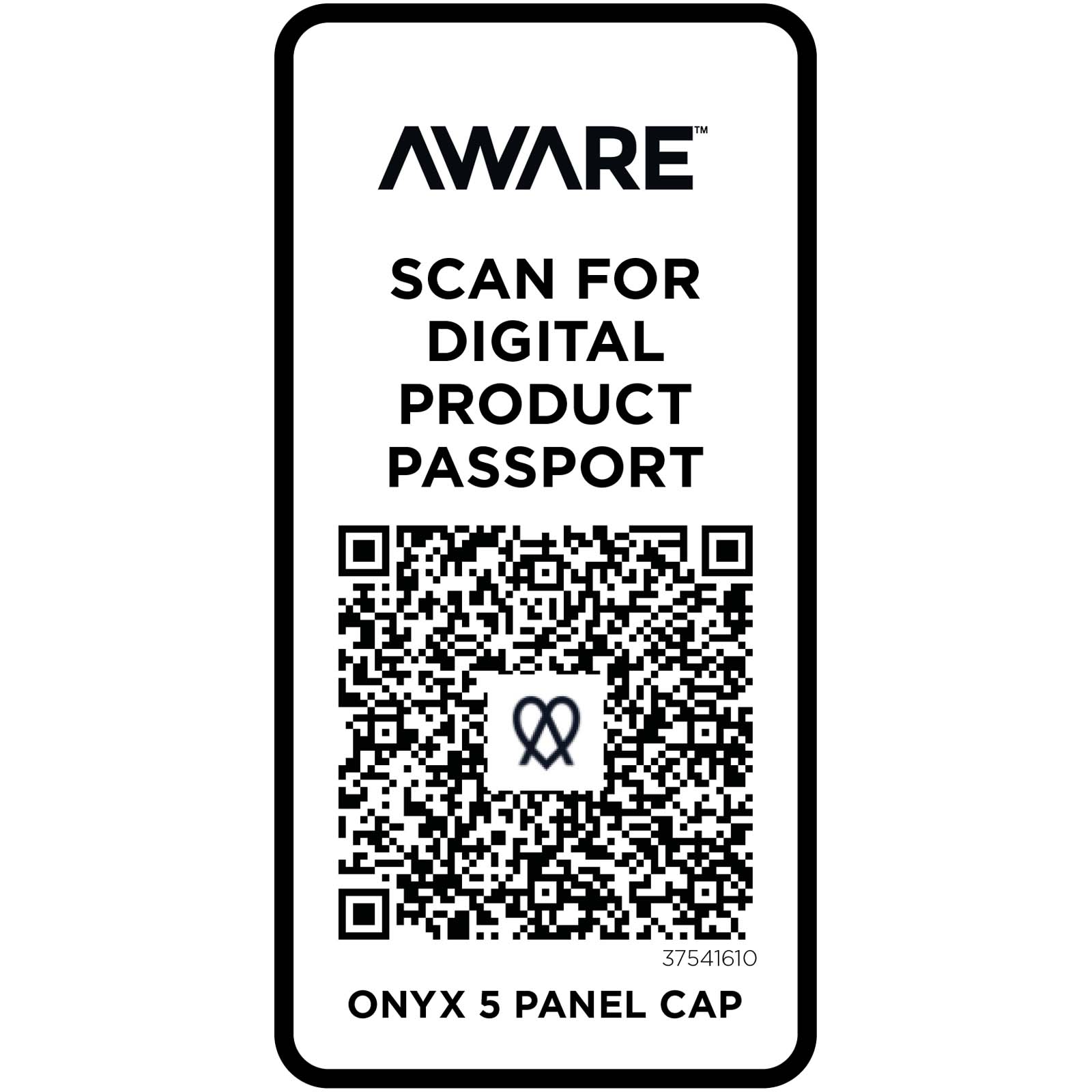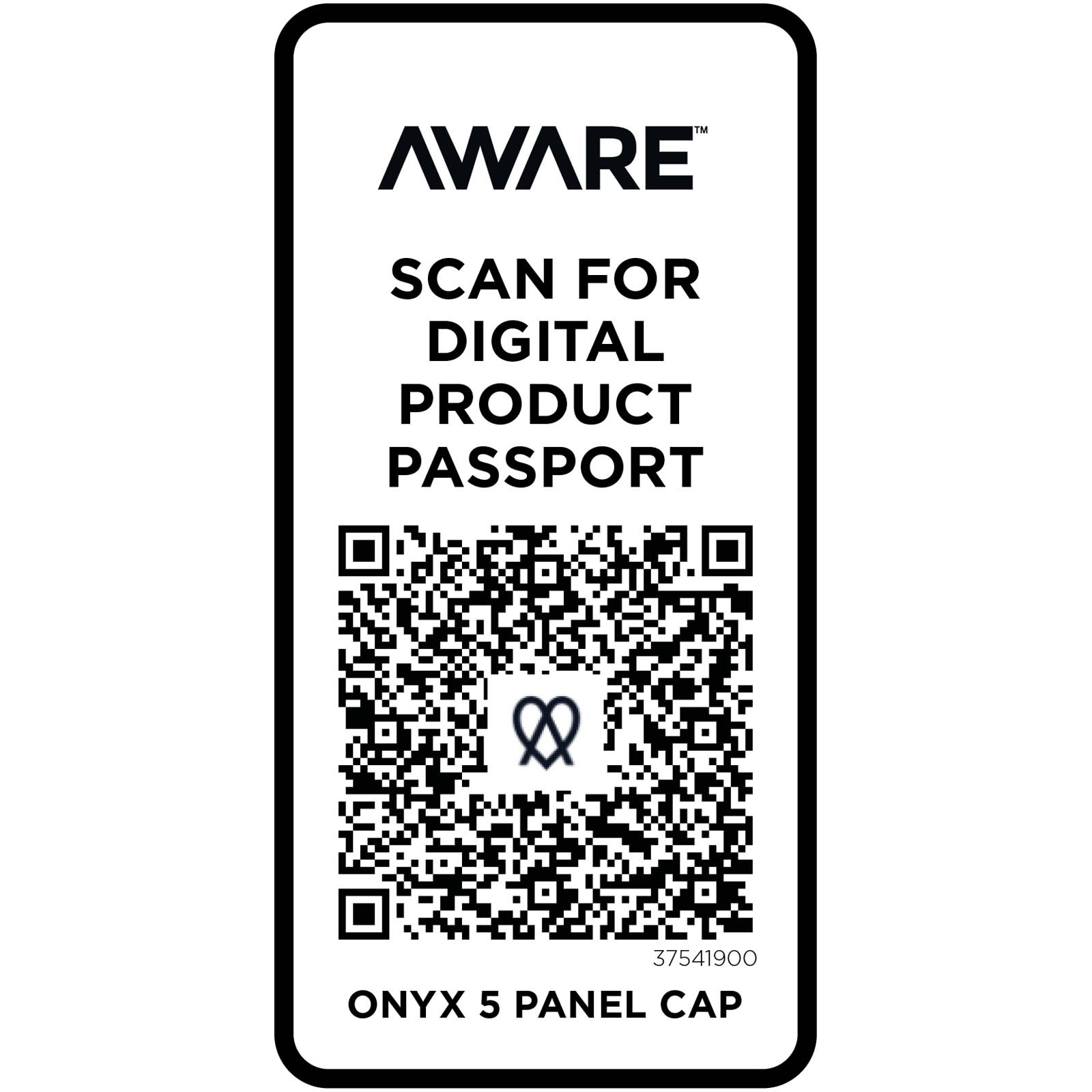 Onyx 5-panelowa czapka wykonana w 70% z bawełny pochodzącej z recyklingu i w 30% z poliestru pochodzącego z recyklingu. Została zaprojektowana z myślą o wygodnym dopasowaniu do obwodu głowy 58 cm, a zapięcie na metalową klamrę umożliwia łatwą i bezpieczną regulację. Czapka zawiera włókna Cyclo® pochodzące z recyklingu, w przypadku których wykorzystano wstępnie posortowane odpady, które mają wpływ na kolor przędzy. Włókna te nie tylko zmniejszają zapotrzebowanie na surowce pierwotne, ale także są przejawem zaangażowania w tworzenie obiegu zamkniętego, stanowiąc realny przykład zmniejszania ilości odpadów i promując gospodarkę w obiegu zamkniętym. Do każdej czapki dołączony jest również znacznik Aware™. Ta innowacyjna funkcja pozwala użytkownikom prześledzić za pomocą kodu QR pochodzenie produktu i pokonaną przez niego drogę, zwiększając przejrzystość łańcucha dostaw i wspierając silniejszy związek między produktem a jego procesem produkcyjnym.