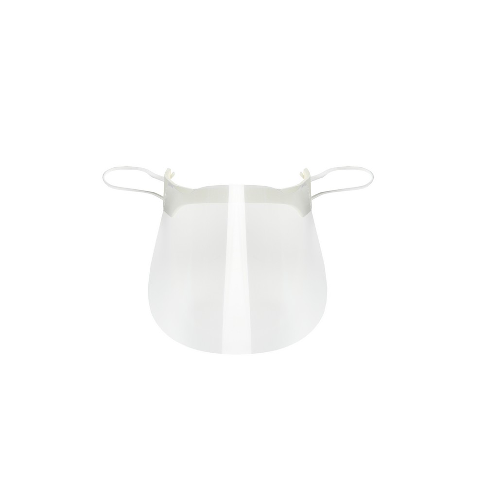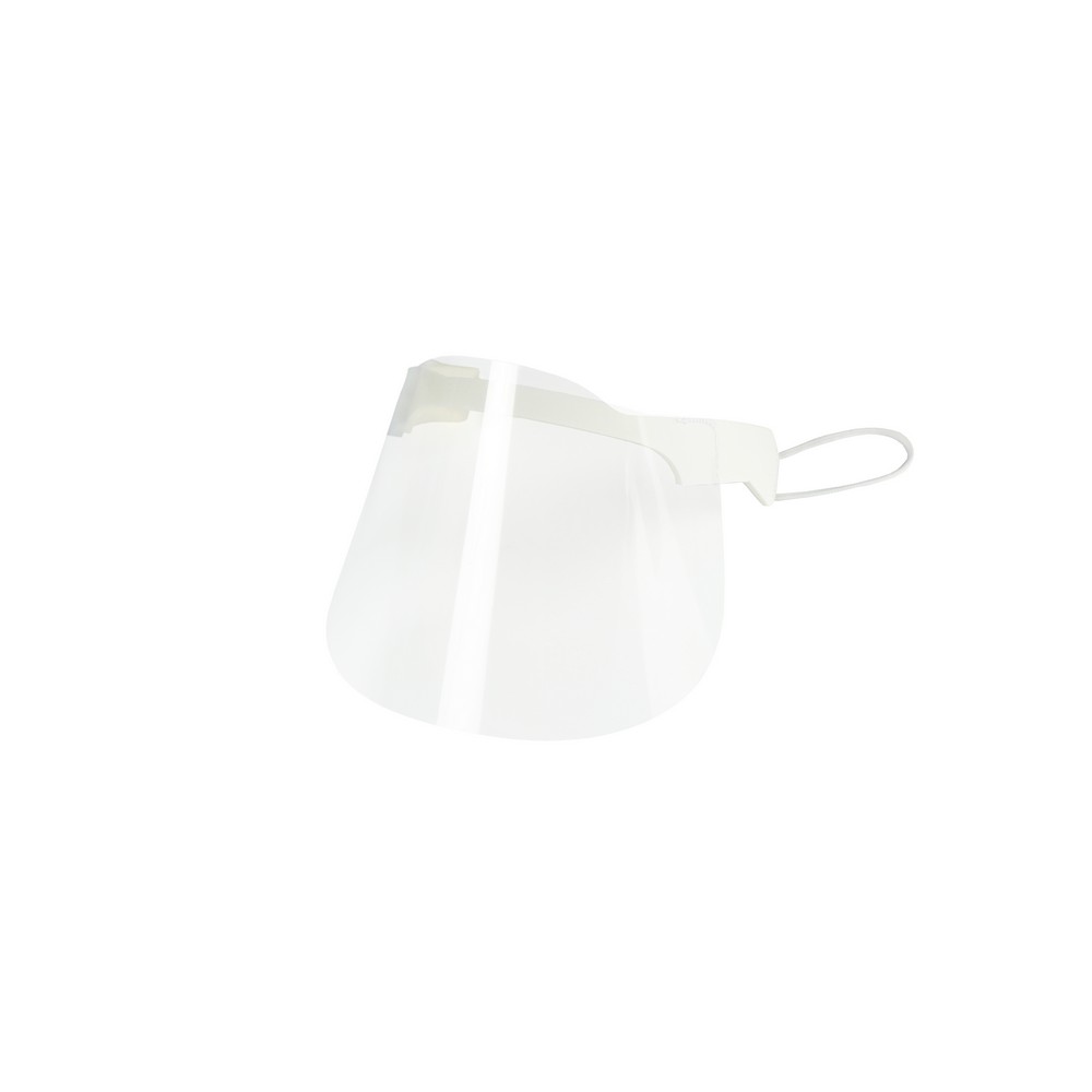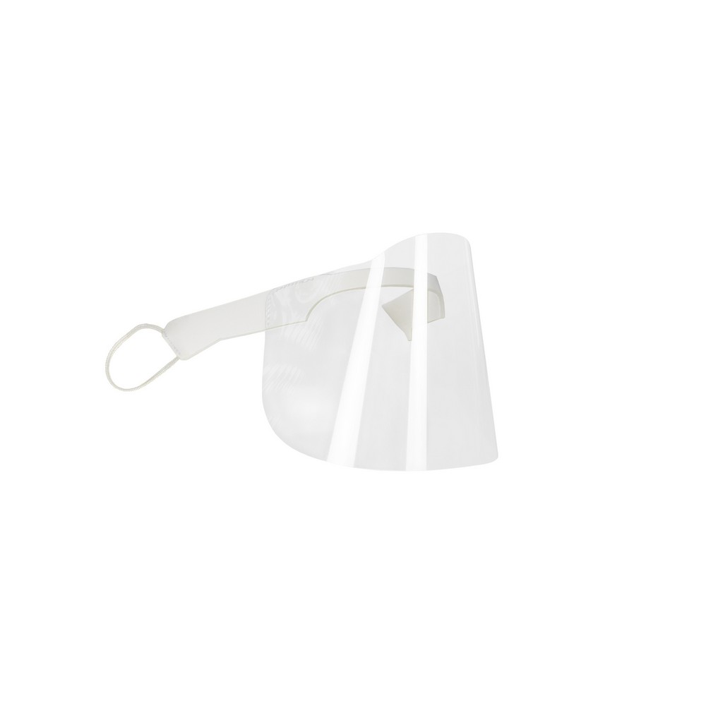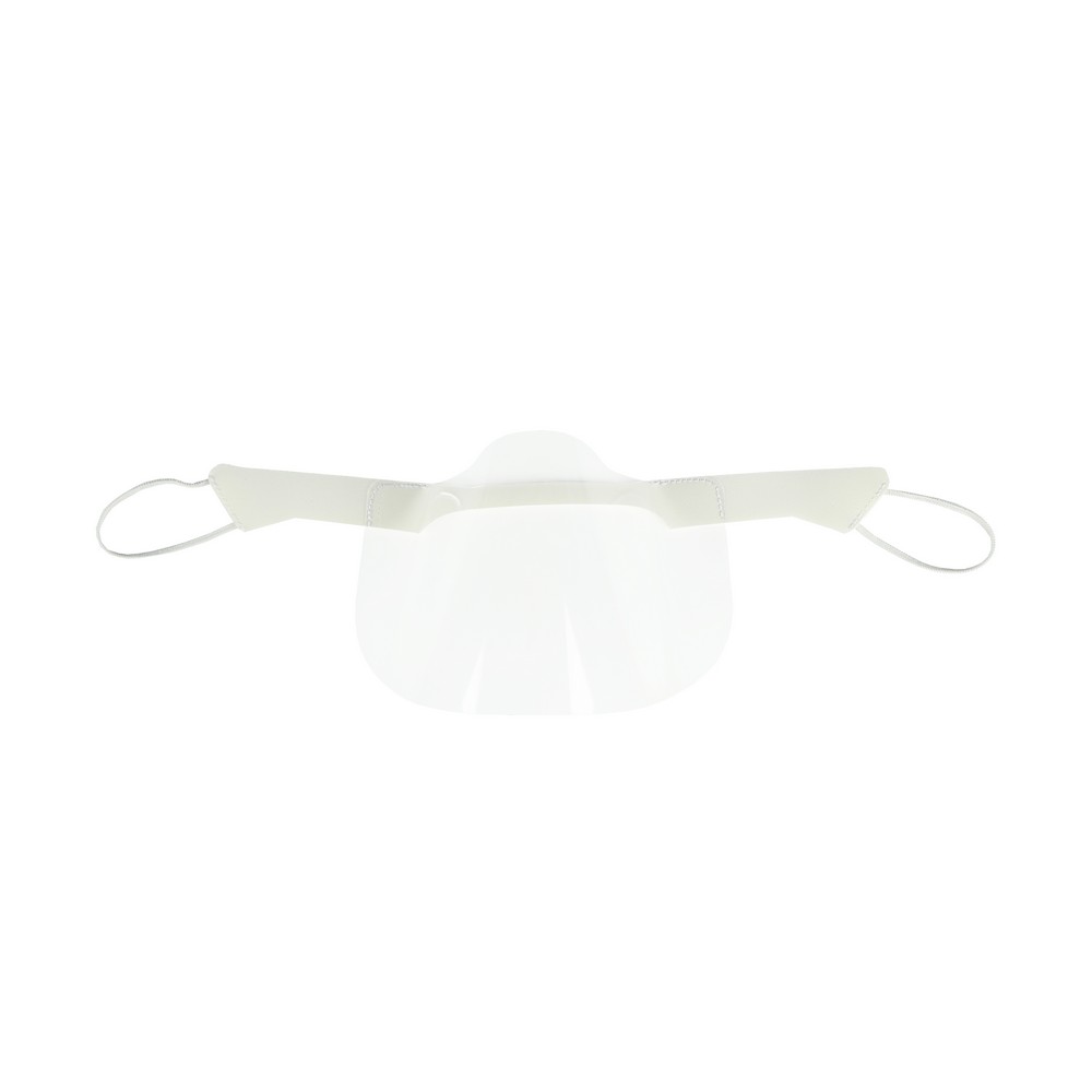 Osłona na nos i usta z elastycznymi mocowaniami, wielokrotnego użytku, wykonana z przezroczystego tworzywa PET, łatwa do dezynfekcji po każdym użyciu, posiada piankę poliestrową dla większego komfortu użytkowania (wyprodukowana w Europie / made in Europe)