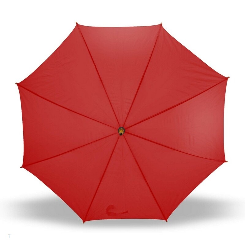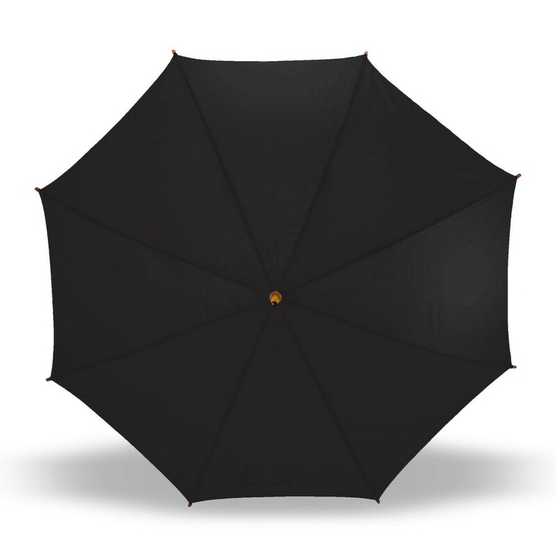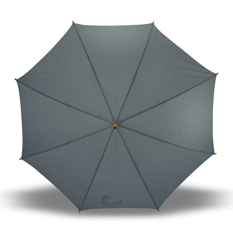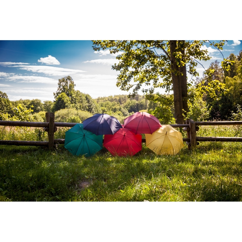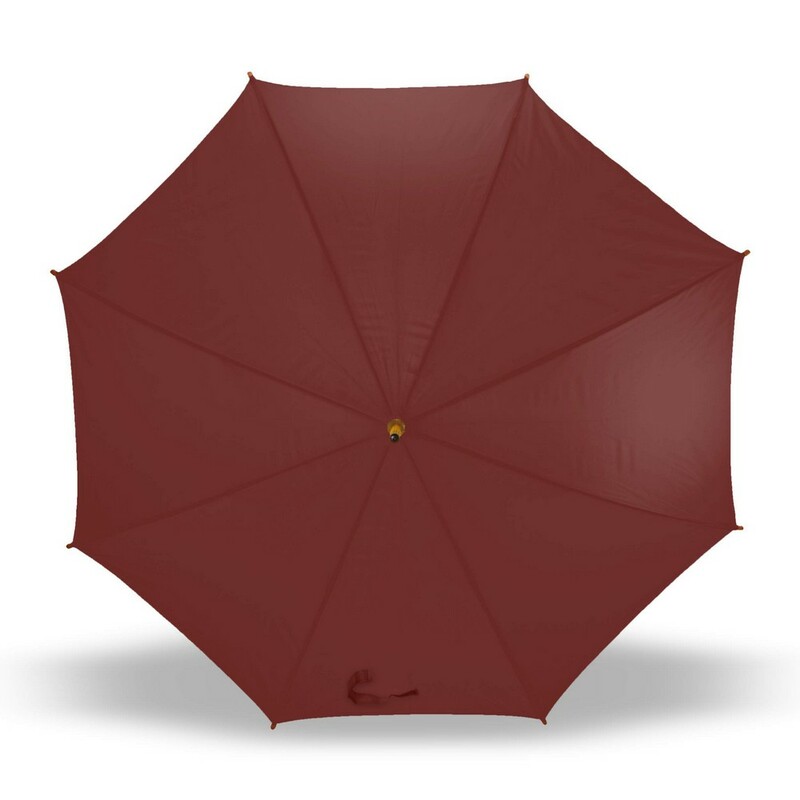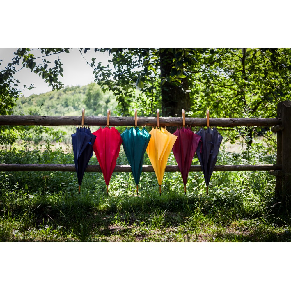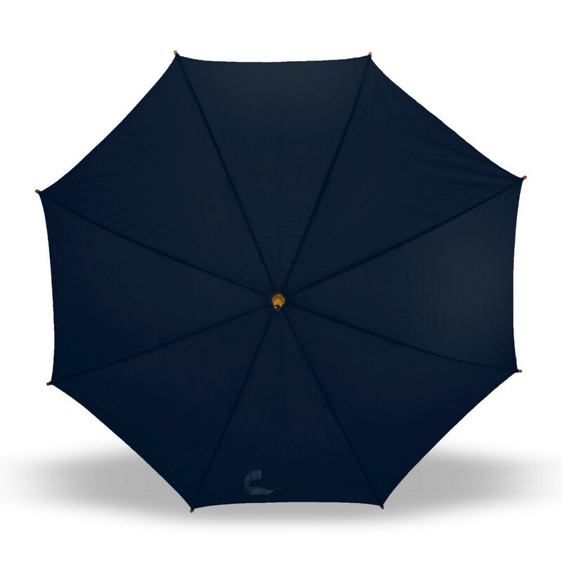 Parasol automatyczny 23″, posiada 8 paneli oraz zapięcie na rzep, drewniany trzon i rączka, produkt wykonany z poliestru 190T