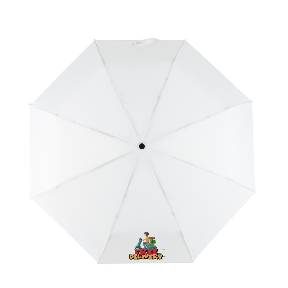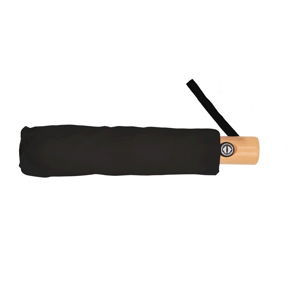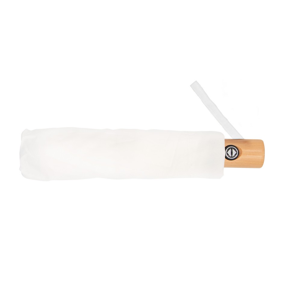 Parasol automatyczny, składany, wykonany z RPET, drewniana rączka z uchwytem na rękę w kolorze paneli, 8 paneli, zapięcie na rzep, pokrowiec w komplecie