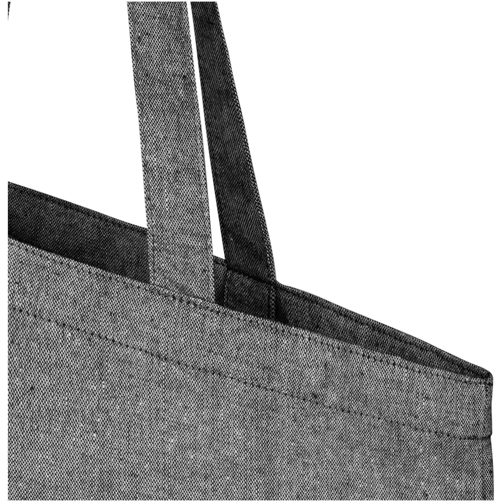 Torba na zakupy wykonana z mieszanki bawełny i poliestru pochodzących z recyklingu o gramaturze 150 g/m². Torbę można łatwo złożyć, aby zmieściła się w niewielkiej przestrzeni i jest idealnym towarzyszem podczas różnych czynności, takich jak zakupy spożywcze, jednodniowe wycieczki lub projekty rzemieślnicze. Bawełna poddana recyklingowi pochodzi z tzw. wstępnych odpadów konsumpcyjnych wytwarzanych przez zakłady włókiennicze w trakcie procesu cięcia. Podobne kolory są mieszane ze sobą, więc nie jest wymagane dodatkowe barwienie. Ze względu na charakter bawełny pochodzącej z recyklingu mogą występować niewielkie różnice w kolorze. Dodaje to bardziej autentycznego wyglądu. Do każdej torby dołączony jest również znacznik Aware™. Ta innowacyjna funkcja pozwala użytkownikom prześledzić za pomocą kodu QR pochodzenie produktu i pokonaną przez niego drogę, zwiększając przejrzystość łańcucha dostaw i wspierając silniejszy związek między produktem a jego procesem produkcyjnym. Wytrzymałość do 5 kg. Długość uchwytu: 31 cm.