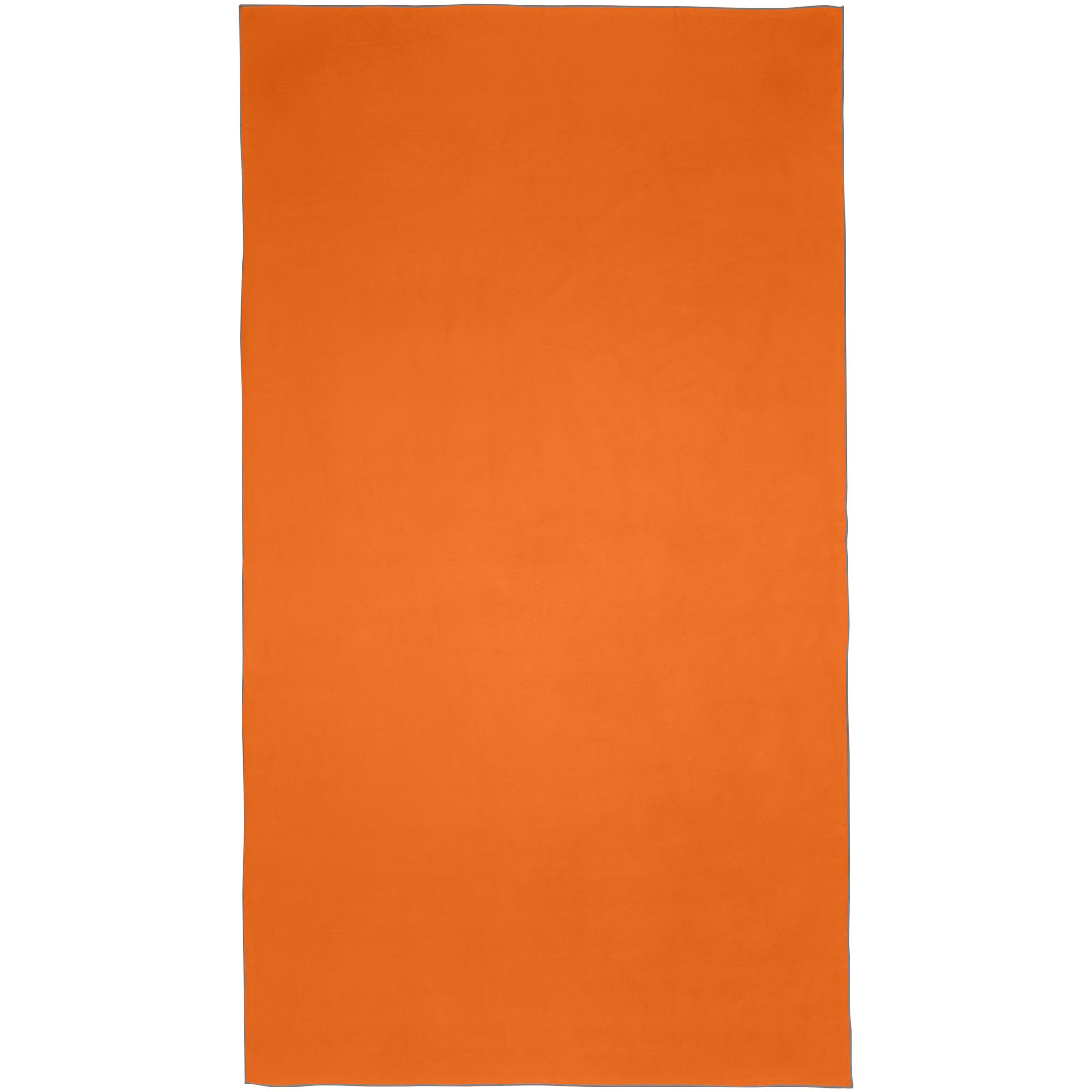 Pieter bardzo chłonny, lekki i szybko schnący ręcznik sportowy wykonany z trwałego i niezwykle miękkiego materiału. Po złożeniu i zabezpieczeniu elastyczną opaską ręcznik zmniejsza się do niewielkich rozmiarów, dzięki czemu nadaje się do zabrania na siłownię, basen lub na wędrówkę z plecakiem albo kemping. Ręcznik ma wymiary 180 x 100 cm i jest wykonany w 90% z poliestru pochodzącego z recyklingu z certyfikatem GRS i w 10% z nylonu. Można go prać w pralce w temperaturze 40°C. Dostarczany z woreczkiem do przechowywania (25 x 8,5 cm) wykonanym z plastiku PET z recyklingu, który zapewnia doskonałe miejsce na nadruk logo.
