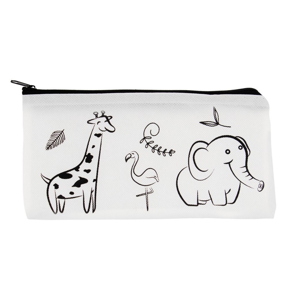 Piórnik zaprojektowany do kolorowania, posiada 5 kredek świecowych w różnych kolorach w komplecie, produkt wykonany z materiału non-woven