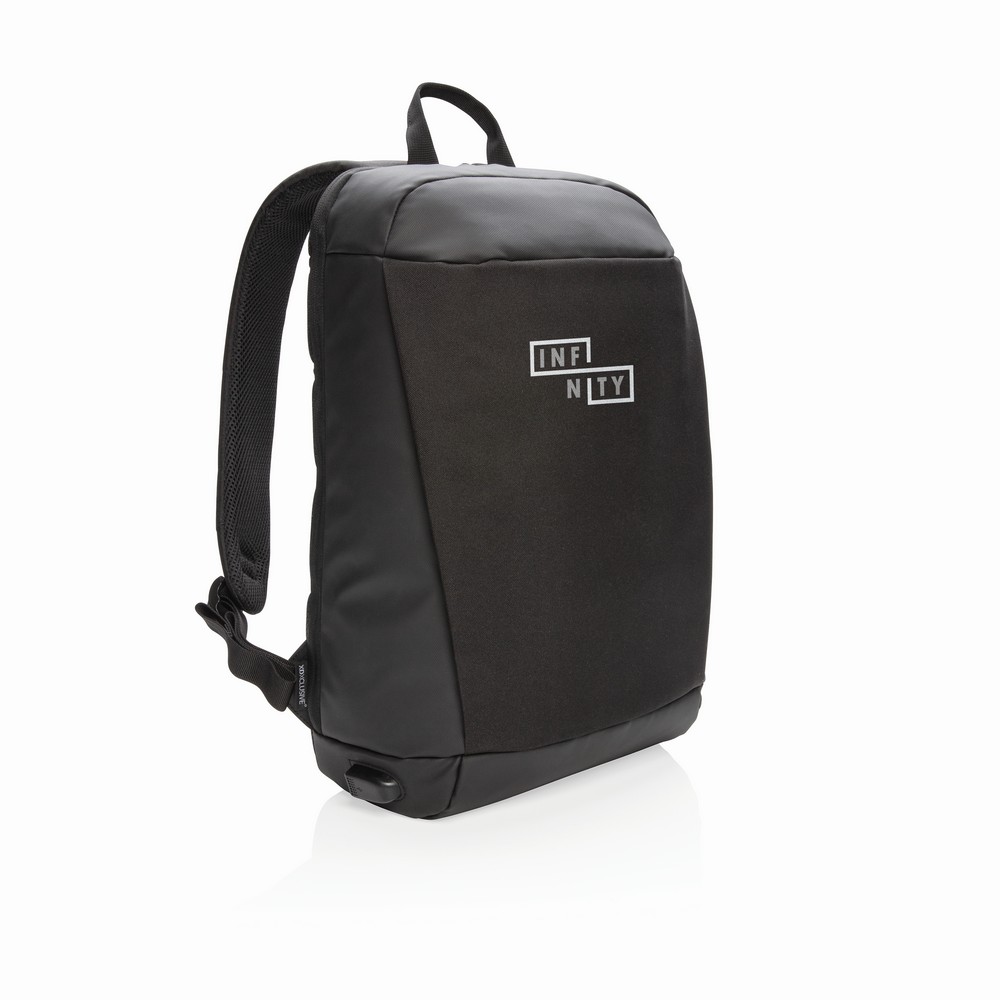 Plecak chroniący przed kieszonkowcami z przegrodą na laptopa 15,6″, miękka przegroda główna, kieszenie z ochroną RFID, gniazdo USB do ładowania telefonów (power-bank nie jest dołączony), nie zawiera PVC, wzór zastrzeżony®, ślad węglowy produktu: 4,57 kg CO2