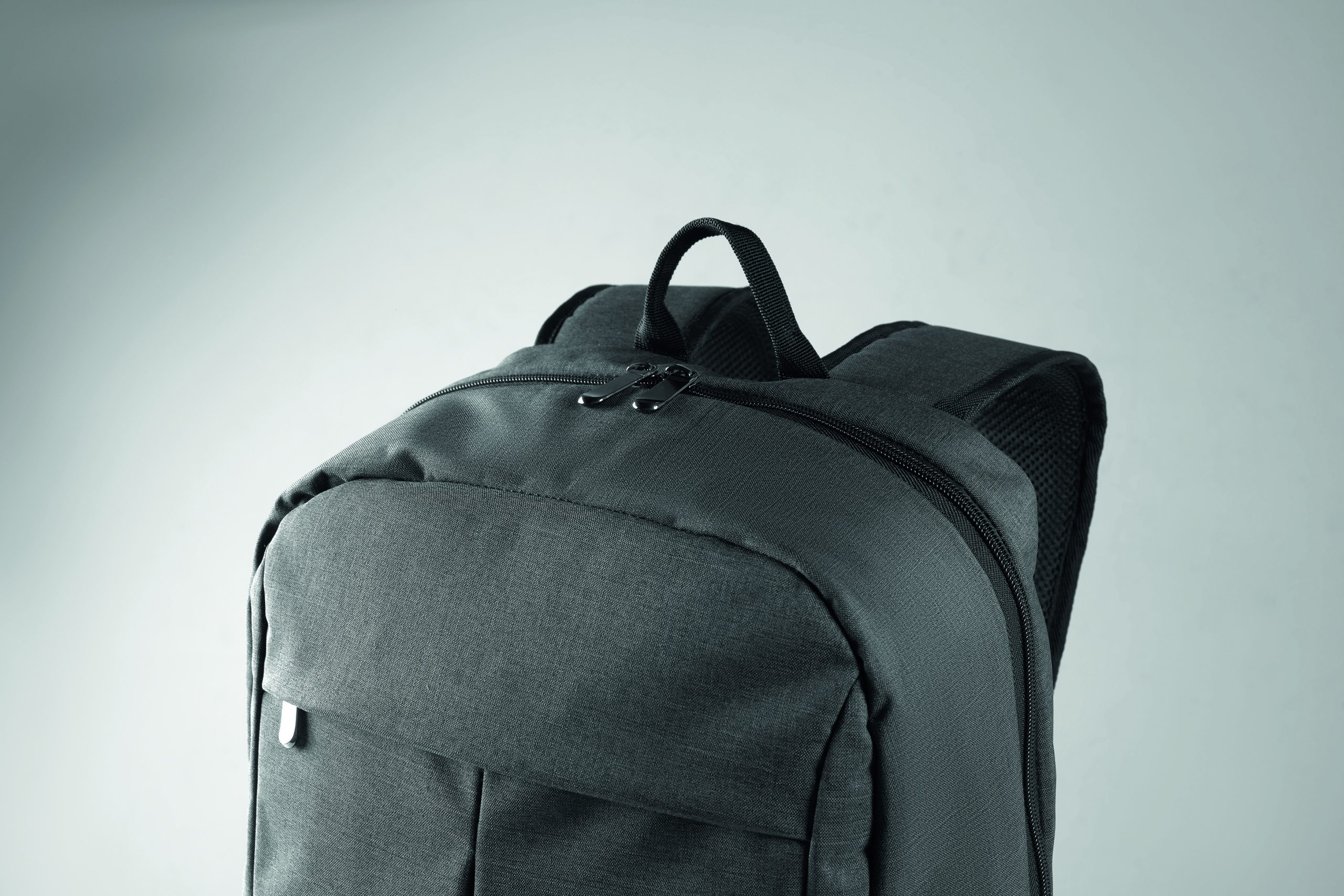 Plecak z poliestru 360D na laptop 15”. Zawiera wewnętrzną kieszeń na laptopa 15’’ i jedną przednią zamykaną na suwak. Wyściełany tył oraz paski na ramiona. Kieszeń na tablet.