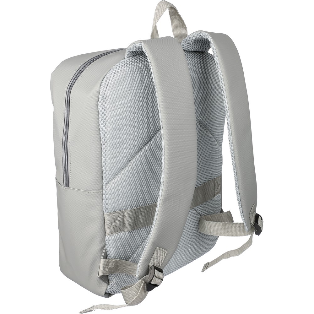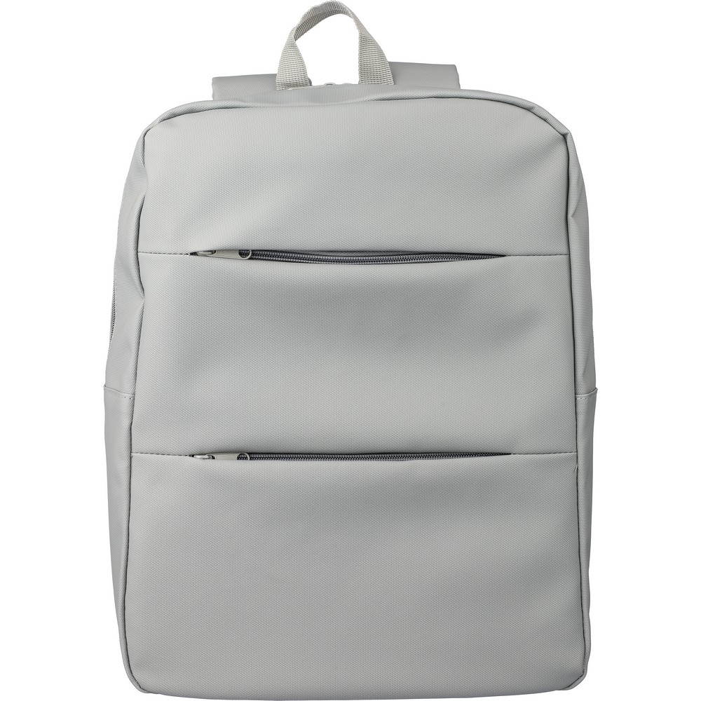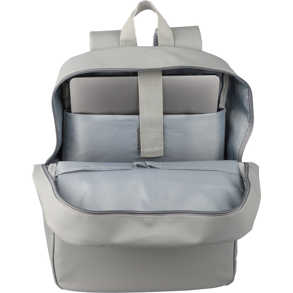 Plecak na laptopa 15″ , wodoodporny, dwie przednie kieszenie zapinane na zamek, duża komora zapinaną na zamek z przegrodą na laptopa zamykana na rzep i kilkoma wewnętrznymi kieszeniami, pasek do mocowania plecaka do wózka podczas podróży, produkt wykonany z PU, poliestru, EPE