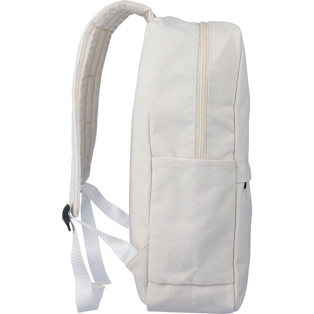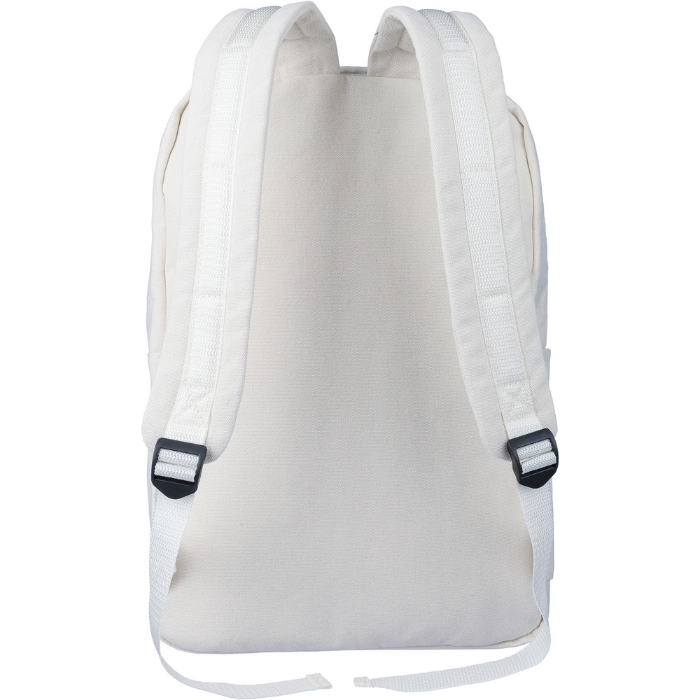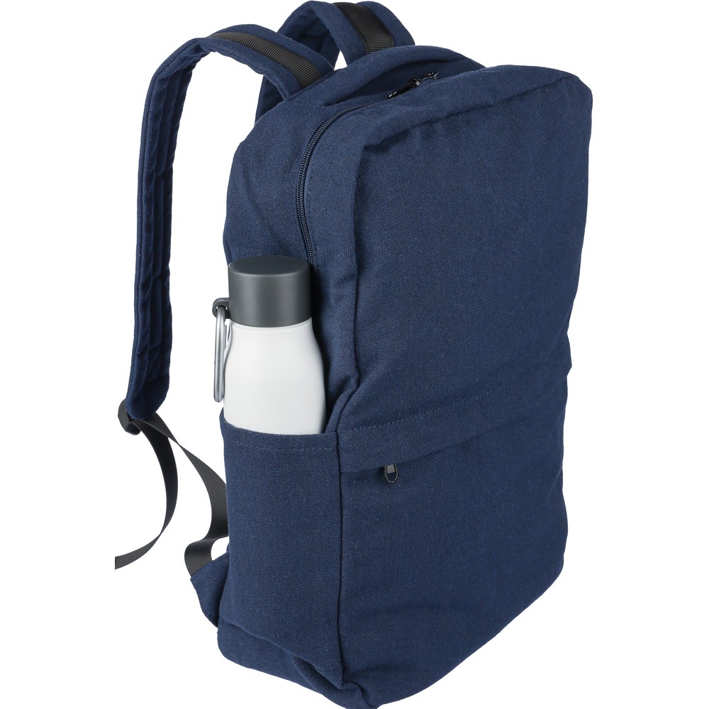 Plecak na laptopa 15″, posiada dużą komorę zapinaną na zamek z wyściełaną przegrodą na laptop 15 cali, dwie kieszenie wewnętrzne oraz dwie kieszenie zewnętrzne, w tym boczną kieszeń i małą przednią kieszeń na zamek, konstrukcja obejmuje wyściełane, regulowane szelki oraz uchwyt do przenoszenia, pojemność: 14L, maksymalne obciążenie: 13 kg, produkt wykonany polibawełny z recyklingu (330 g/m²), podszewka z poliestru 210D
