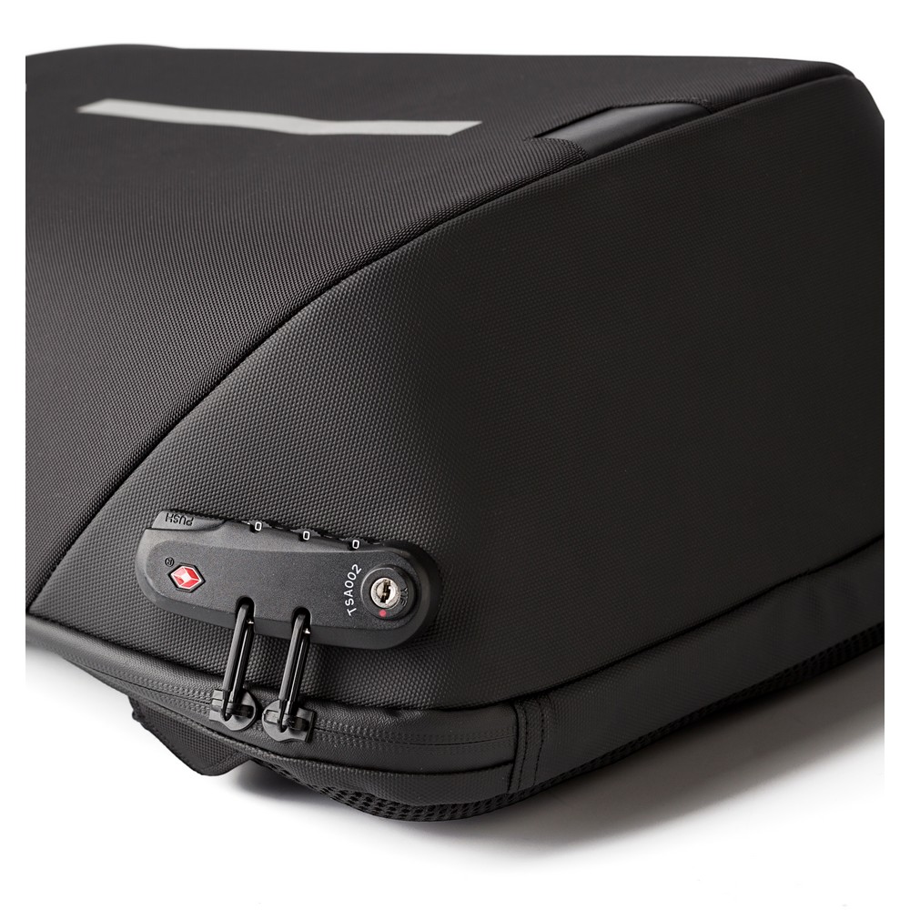 Plecak na laptopa 15″, funkcja redukcji wagi, przegroda główna zamykana na zamek, suwaki blokowane zamkiem szyfrowym (3 cyfry), wiele kieszeni wewnątrz, gniazdo USB z kablem do ładowania telefonów (power-bank nie dołączony), regulowane paski na ramię