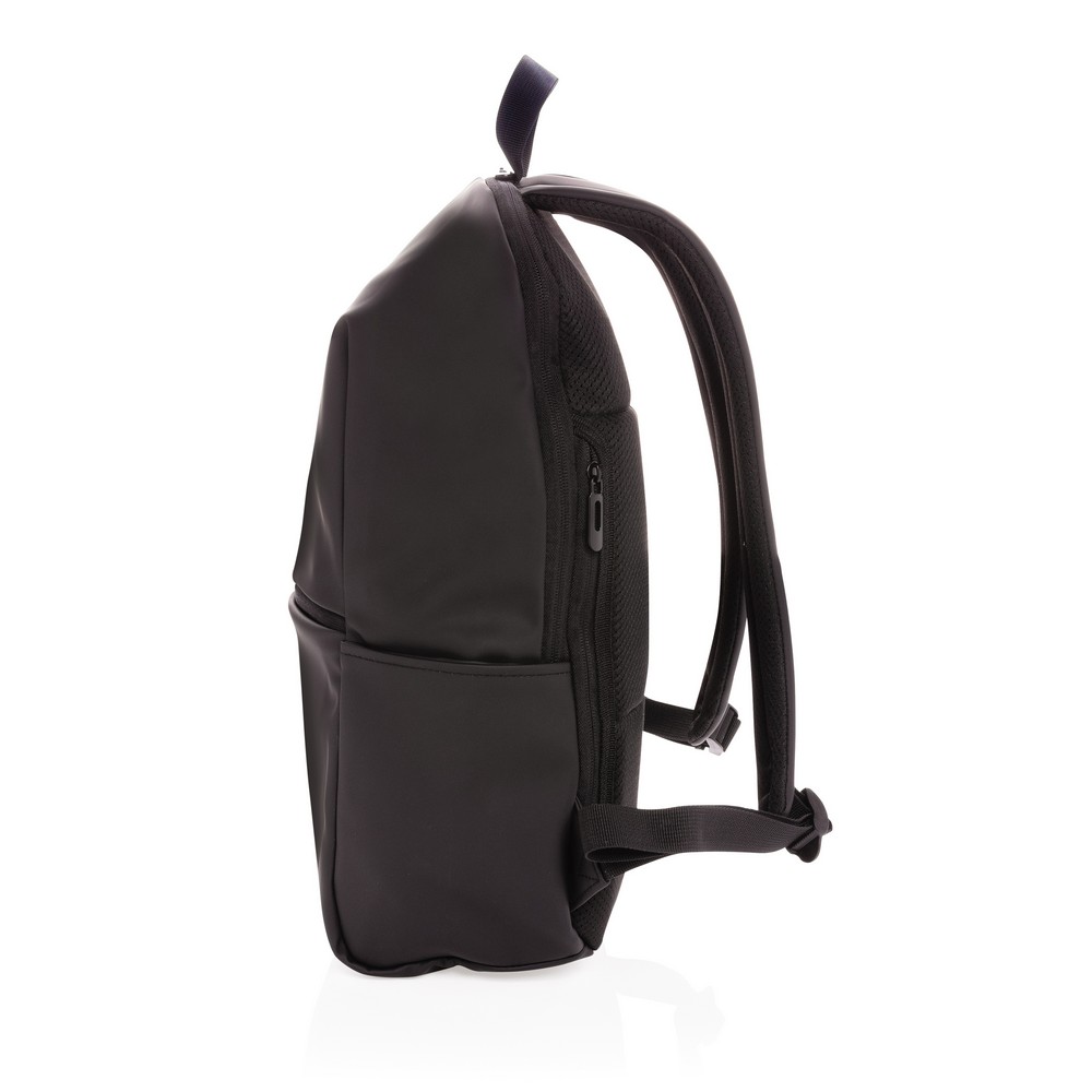 Plecak na laptopa 15,6″, przestronna przegroda główna, wewnątrz 2 kieszenie i 2 pętle na przybory do pisania, miękki tył, regulowane paski na ramiona, wnętrze z poliestru 210D, na zewnątrz PU, nie zawiera PVC, ślad węglowy produktu: 3,03 kg CO2