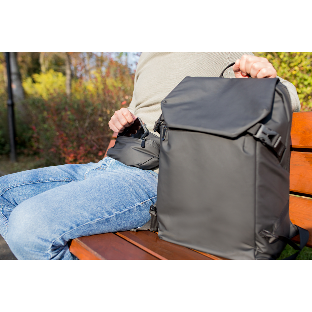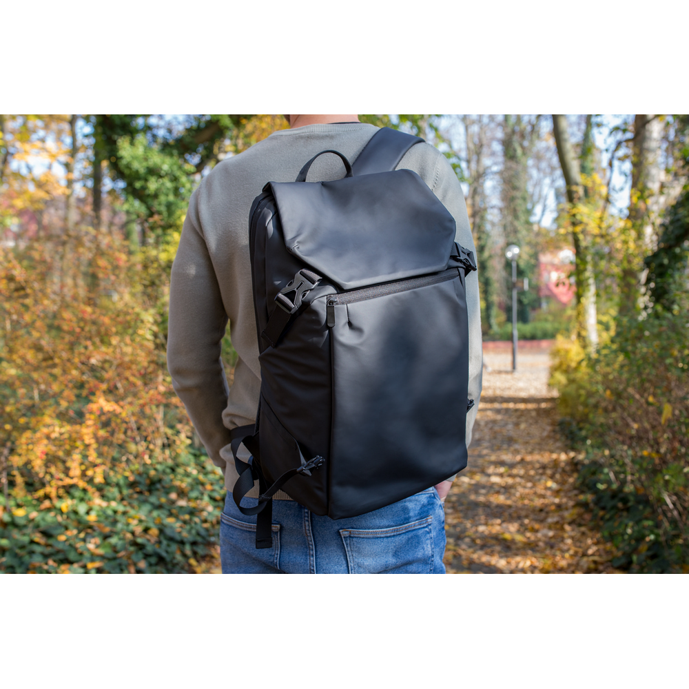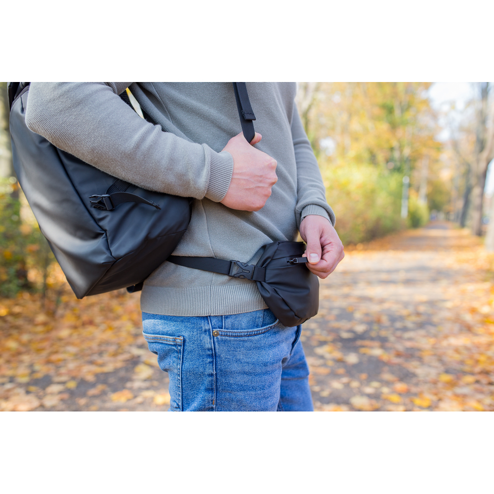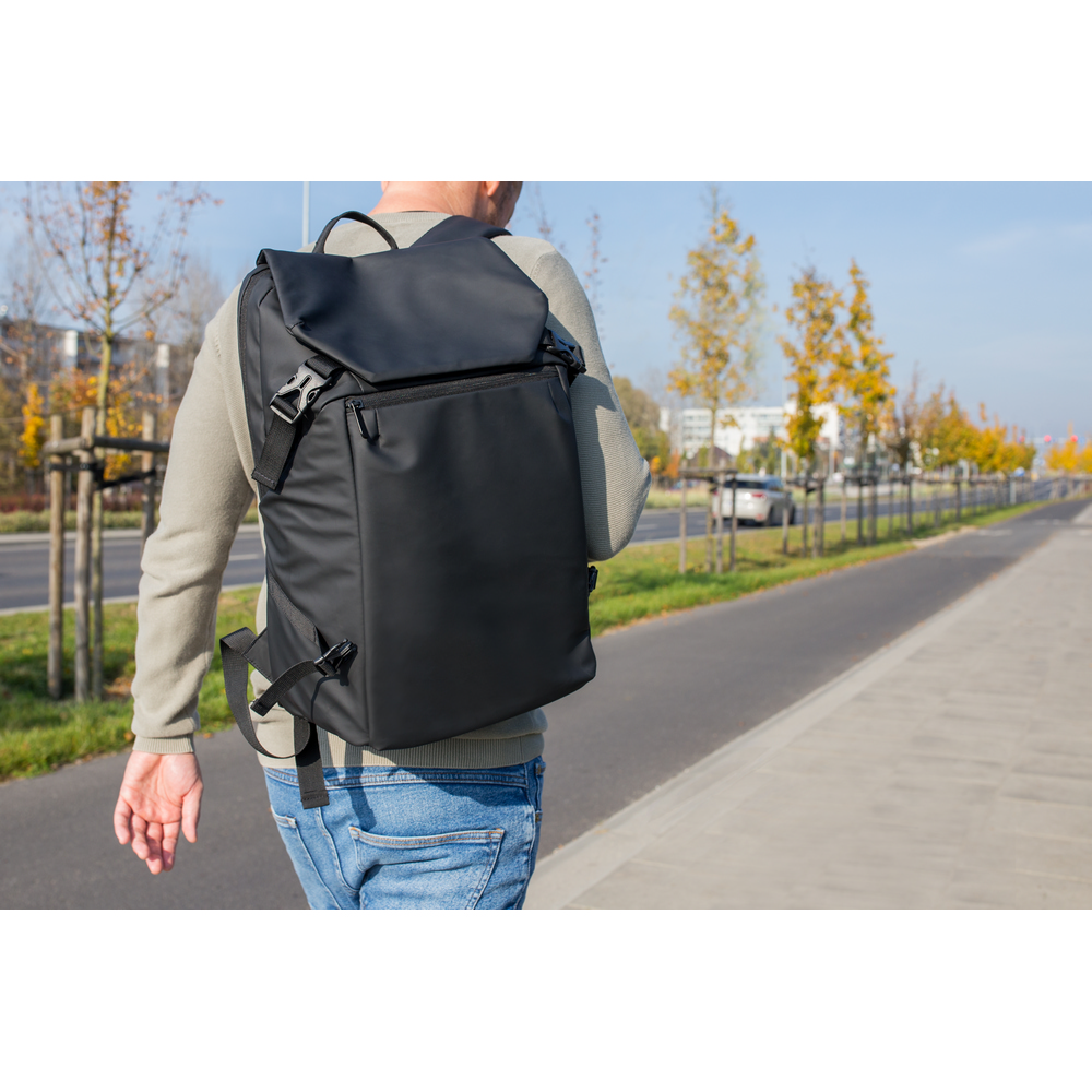 Plecak na laptopa 15,6″ Air Gifts, główna przegroda i przednia kieszeń zamykane na zamek błyskawiczny, przegroda główna z kieszenią na laptopa oraz dodatkowym zamknięciem w postaci klapy z klamrami, na froncie znajduje się odczepiana saszetka zapinana w pasie z przegrodą główną zamykaną na zamek, w komplecie regulowany pasek do saszetki umożliwiający dopasowanie obwodu: min. ok. 97 cm, max. ok. 158 cm, plecak posiada miękki tył zwiększający komfort użytkowania i regulowane paski na ramię umożliwiające dopasowanie ich długości do własnych preferencji, pasek umożliwiający zamocowanie plecaka na torbie podróżnej, produkt wykonany z PU oraz poliestru 210D