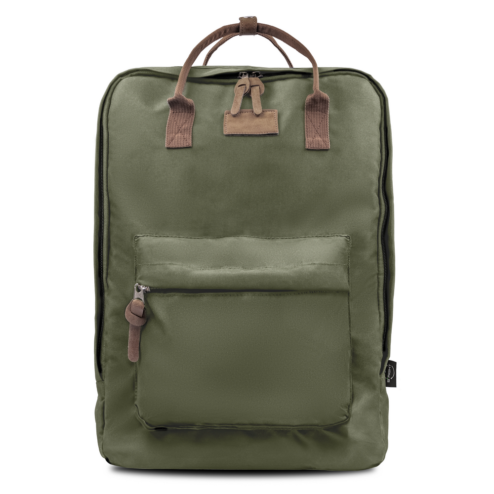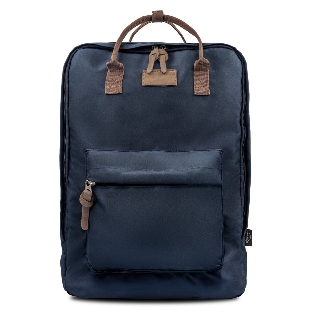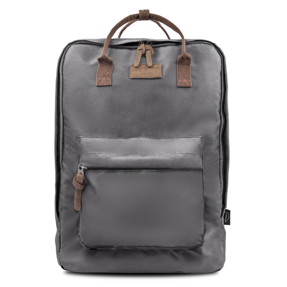 Plecak B’RIGHT na laptopa 15,6″, posiada 2 przegrody główne na zamek błyskawiczny, przednia przegroda główna z różnymi kieszonkami w środku w tym 1 boczną, tylna przegroda główna z kieszenią na laptopa, wnętrze przegród głównych wykończone podszewką w kolorze uchwytów, 1 kieszeń przednia na zamek błyskawiczny, 2 uchwyty z możliwością złączenia paskiem na napę, miękki tył zwiększający komfort użytkowania i regulowane paski na ramię umożliwiające dopasowanie ich długości do własnych preferencji, produkt wykonany z RPET, zgodny z certyfikatem GRS (Global RecycIed Standard)