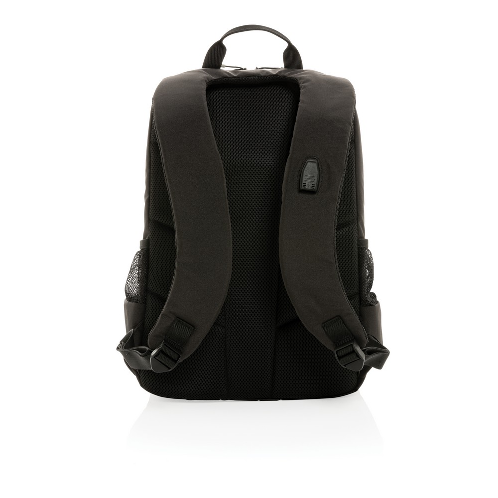 Plecak na laptopa 15,6″, wykonany z RPET, przestronna przegroda główna z wyściełaną przegrodą na laptopa i mniejszymi kieszeniami wewnątrz, kieszeń z ochroną RFID, zintegrowany port USB do ładowania (power-bank nie jest dołączony), posiada wbudowany znacznik AWARE™, który potwierdza wykorzystanie materiałów z recyklingu, dzięki wykorzystaniu materiałów z recyklingu przy produkcji tego plecaka udało się ponownie wykorzystać 32,8 butelek PET 0,5l, 2% wpływów z każdego sprzedanego produktu z kolekcji Impact jest przekazywane na rzecz Water.org, nie zawiera PVC, wzór zastrzeżony®