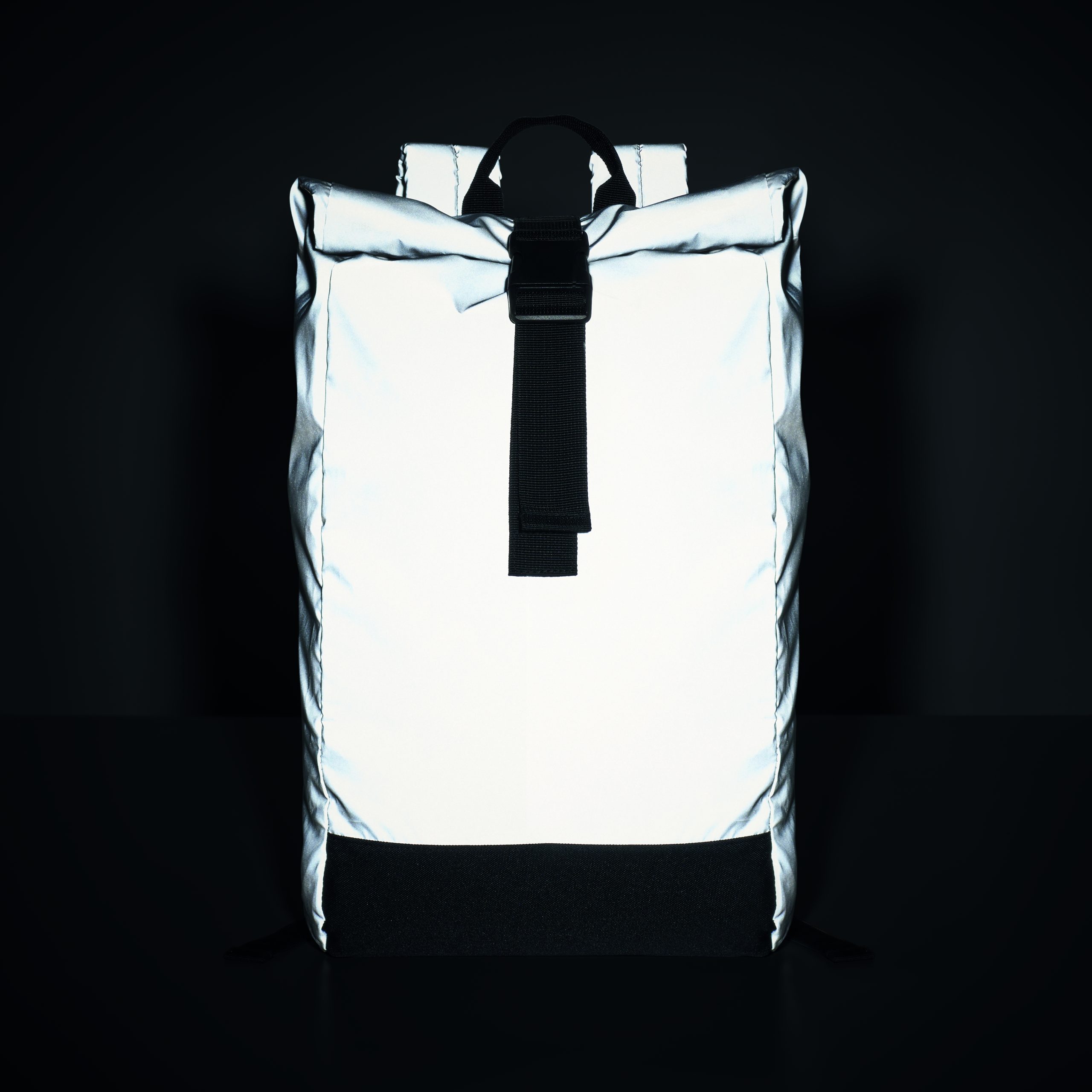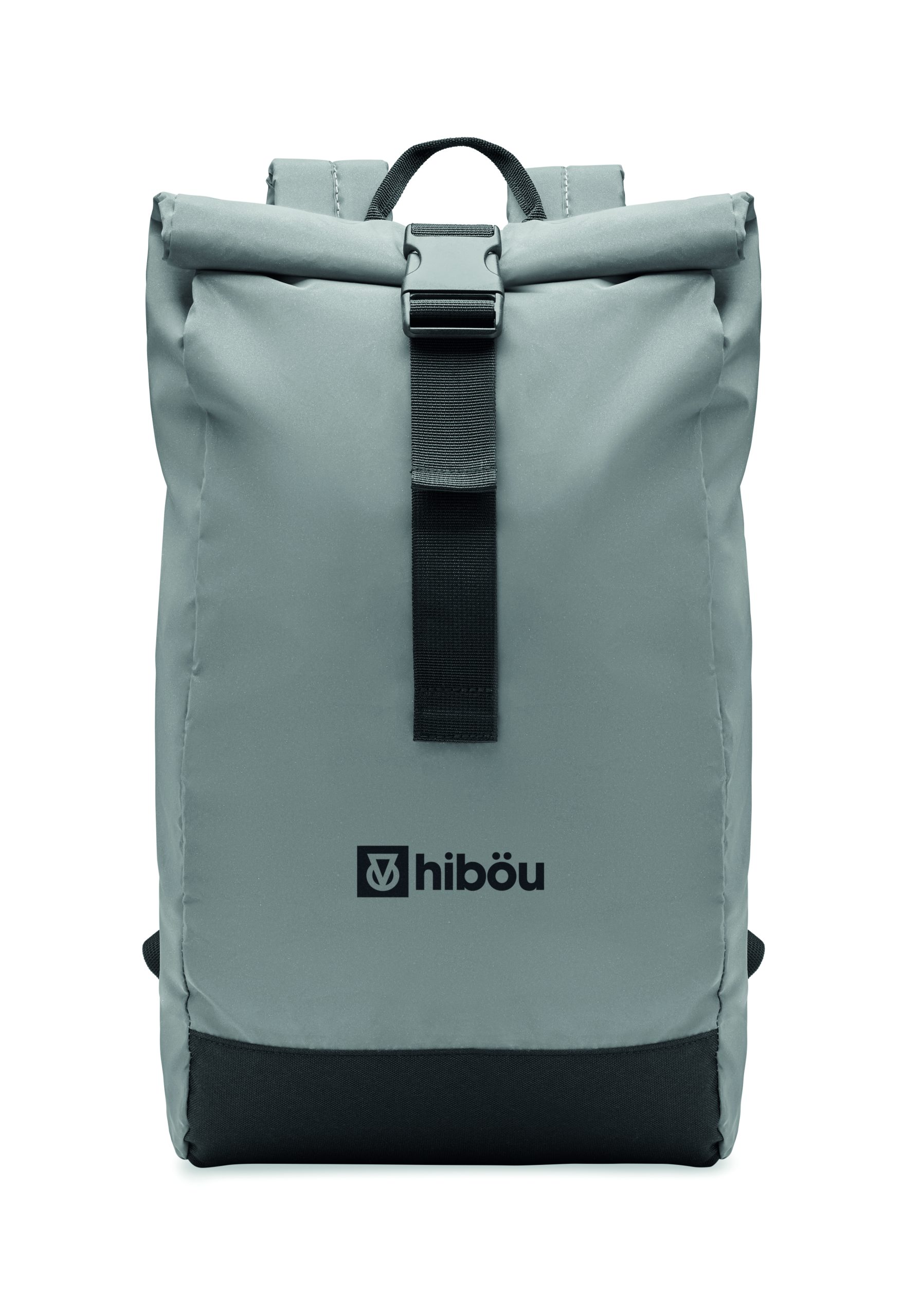 Plecak na laptop 15 cali typu rolltop z odblaskowego poliestru 190T. Dodatkowe zapięcie na rzep. Wyściełane plecy, szelki i spód. Przednia kieszeń na zamek błyskawiczny. Część dolna z poliestru 600D z recyklingu.