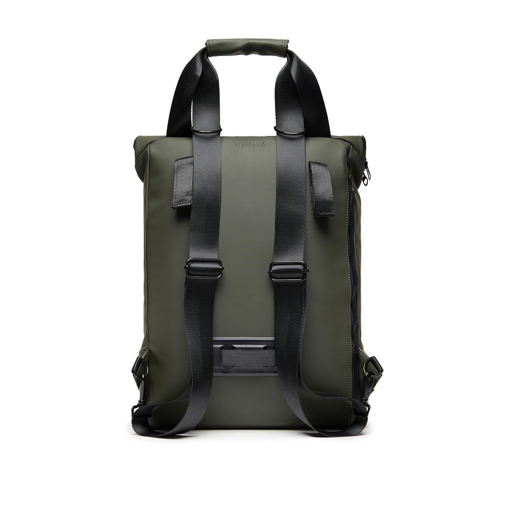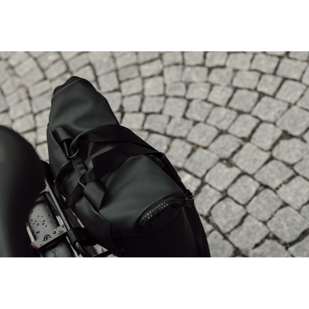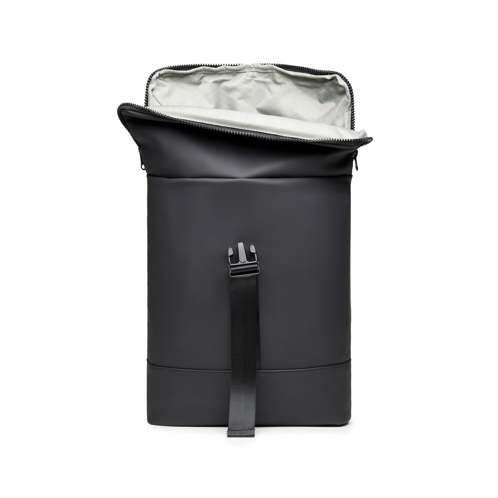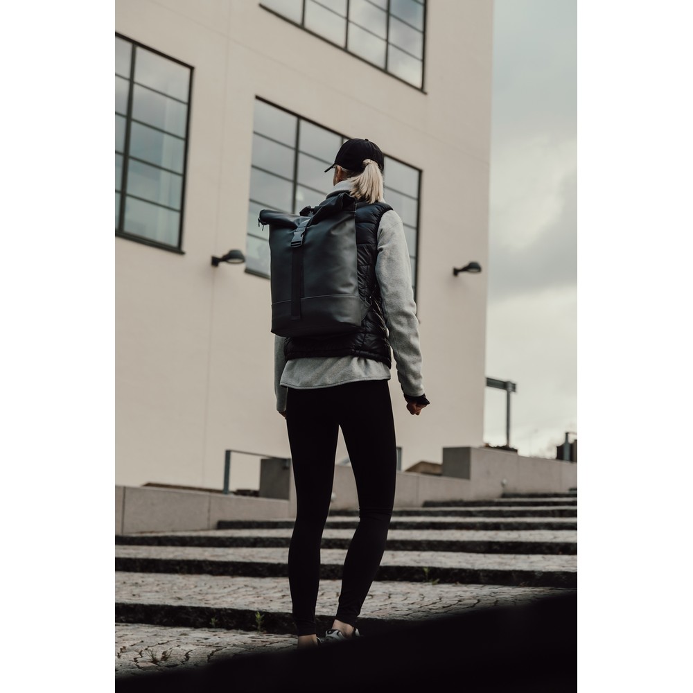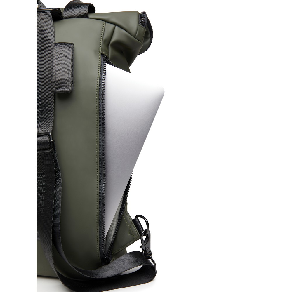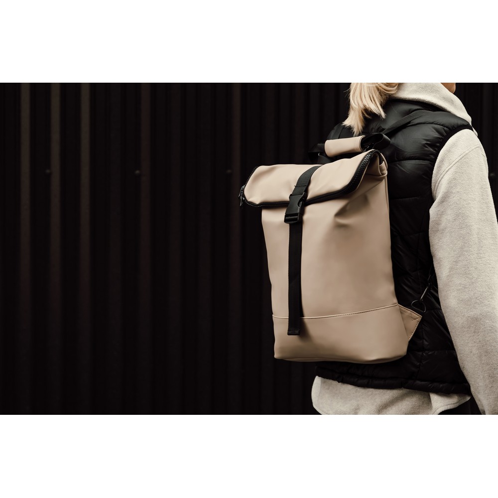 Plecak, wykonany z PU, dzięki specjalnej konstrukcji może być używany zarówno jako plecak jak i jako torba na ramię, wyściełana przegroda na laptopa, możliwość zamocowania do ramy roweru