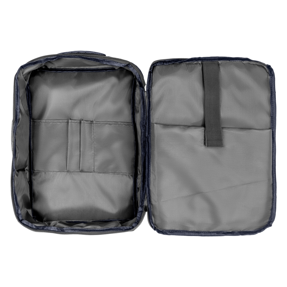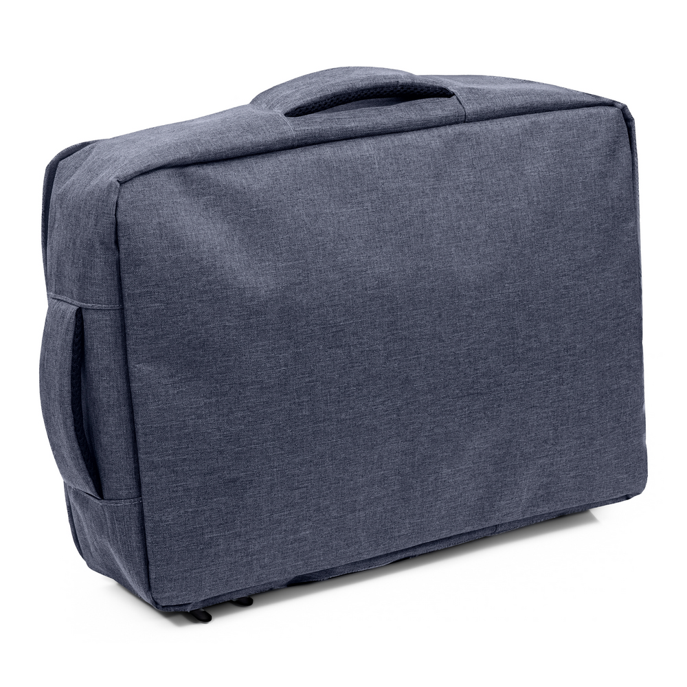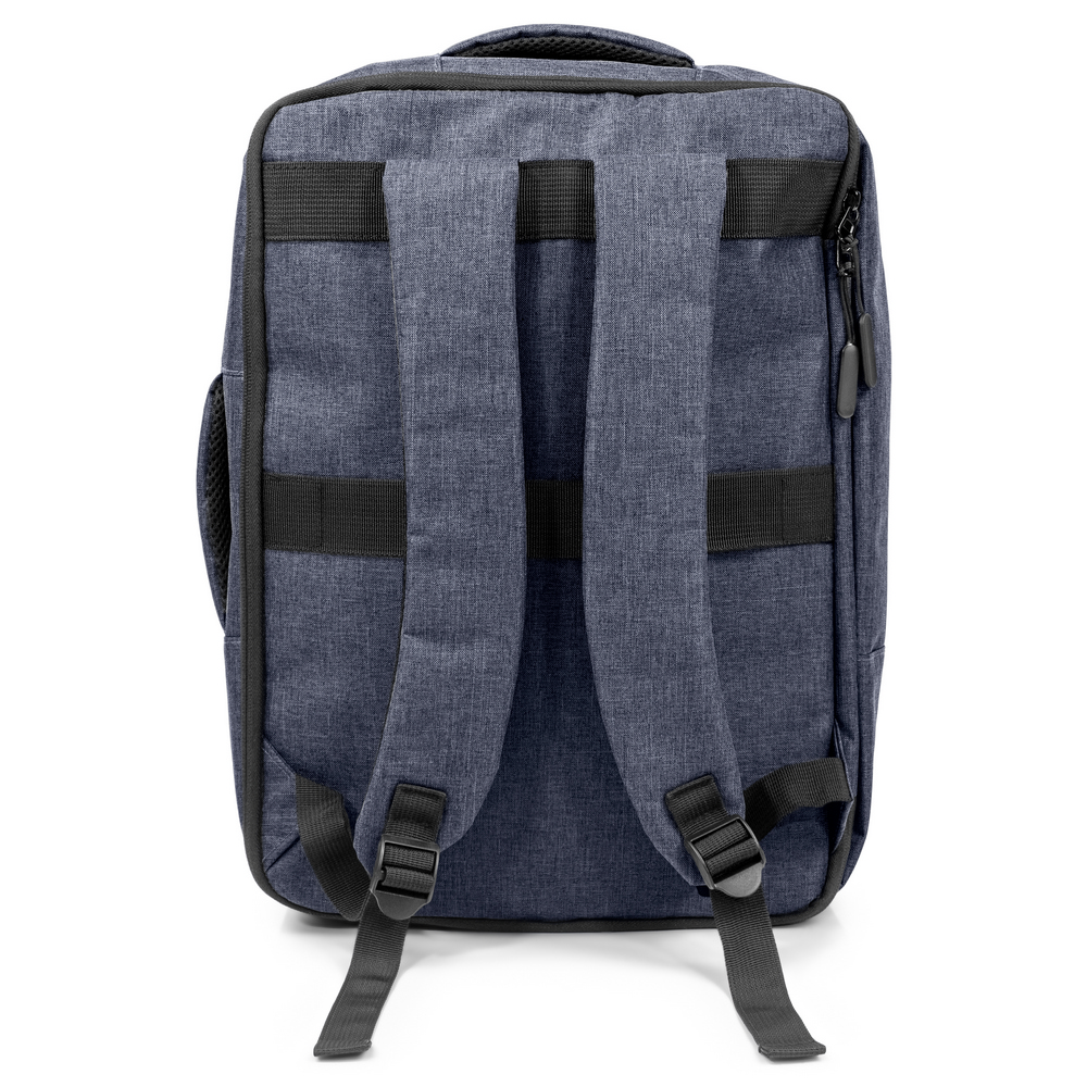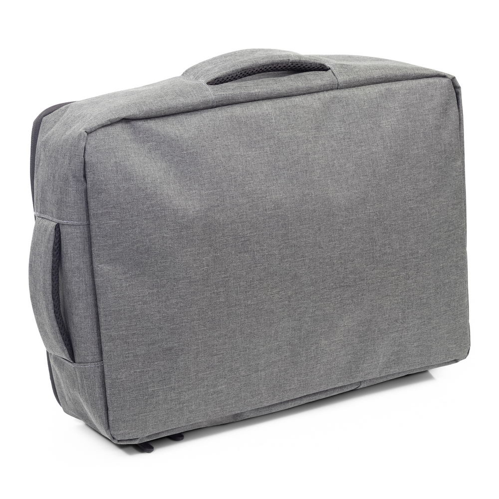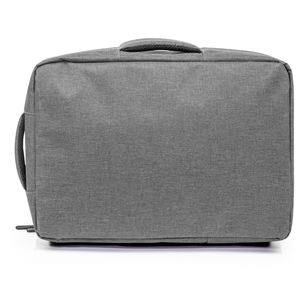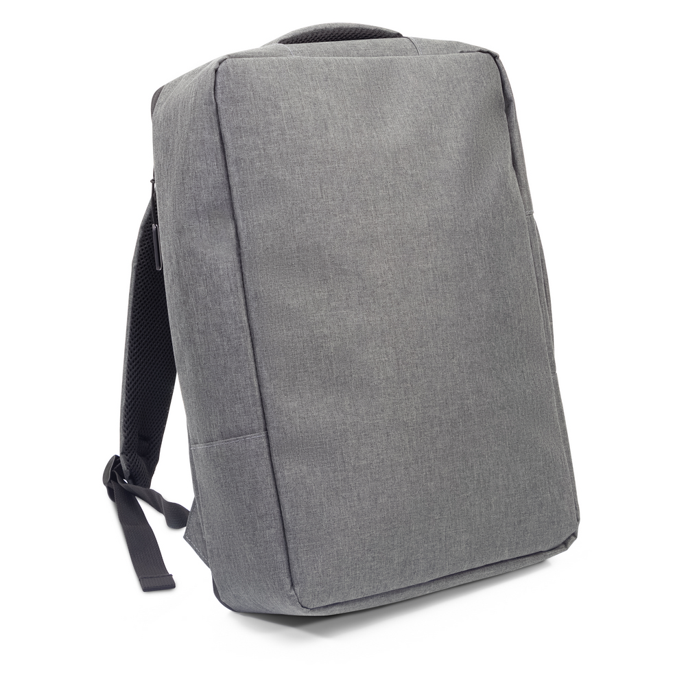Plecak na laptopa 15,6″ z bocznym uchwytem umożliwiającym funkcjonowanie jako torba na laptopa, zapinana główna przegroda z miękką kieszenią na laptopa lub dokumenty, 2 małe kieszenie oraz 2 szlufki na długopisy, zamek błyskawiczny z dodatkowym pullerem ułatwiającym rozpinanie, pasek do zamocowania na torbie podróżnej, posiada regulowane paski na ramię umożliwiające dopasowanie ich długości do własnych preferencji, produkt wykonany z RPET