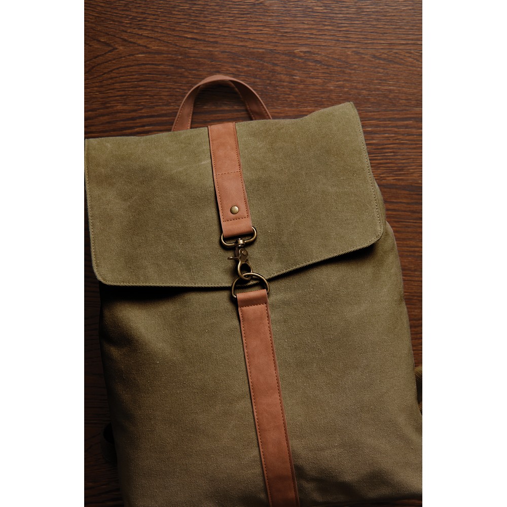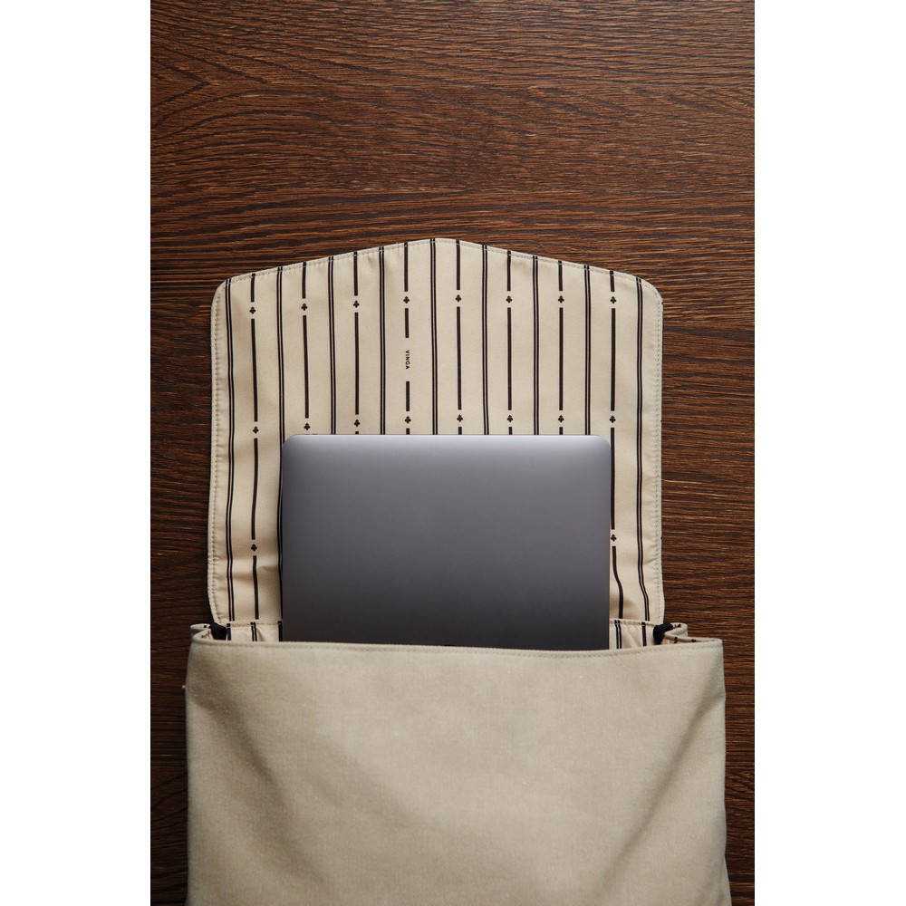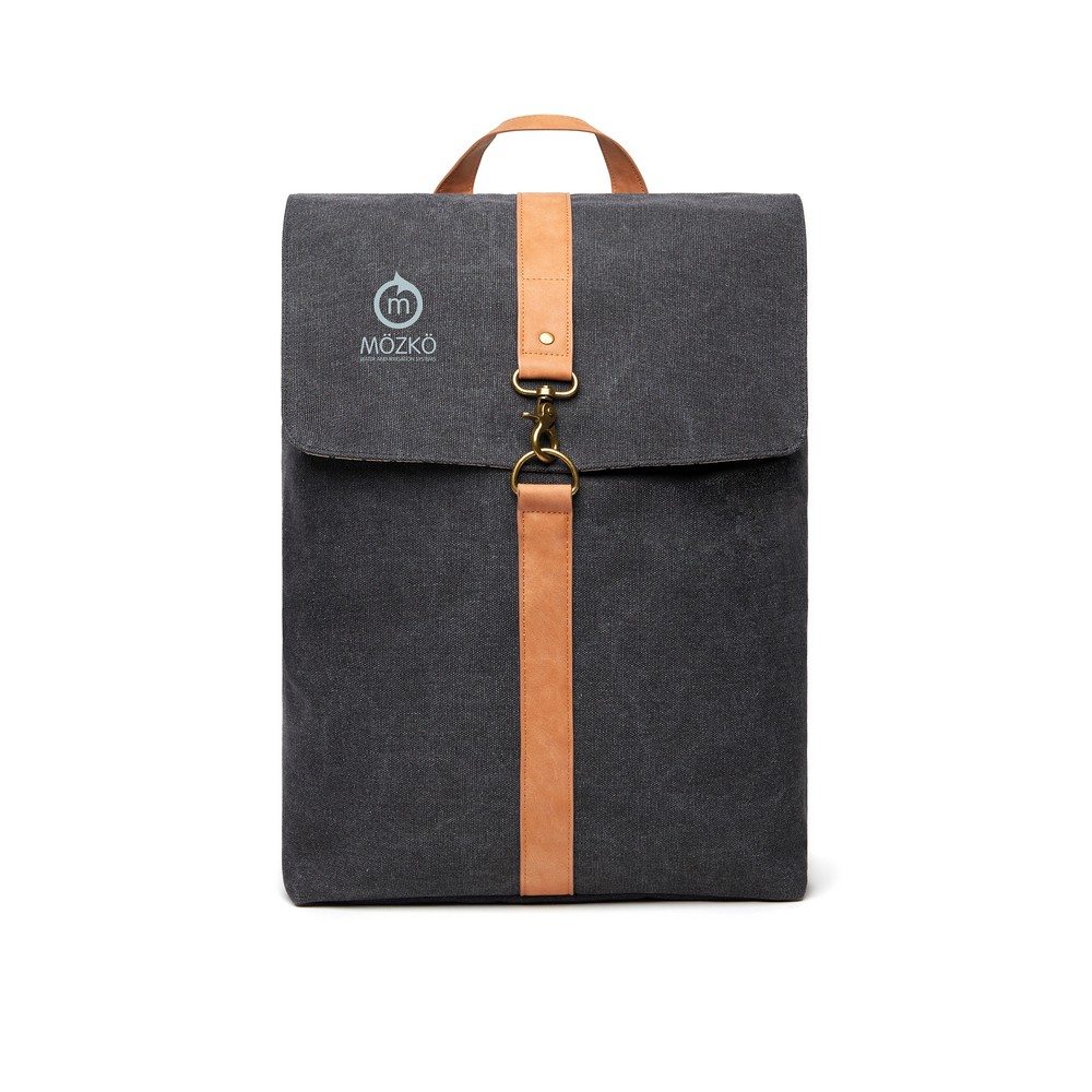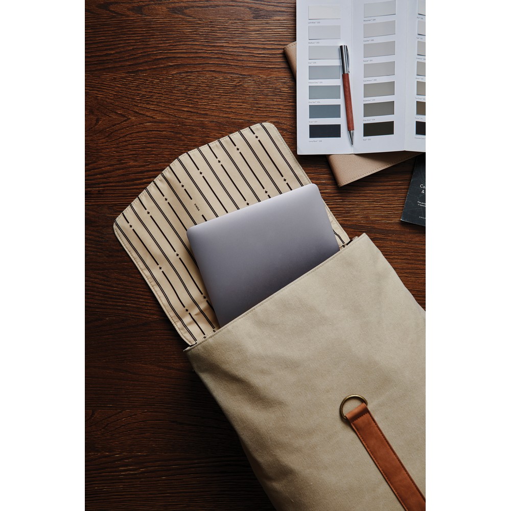 Plecak na laptopa 15”, wykonany w 40% z poliestru i w 60% bawełny pochodzących z recyklingu, wyściełana przegroda na laptopa, regulowane paski na ramiona