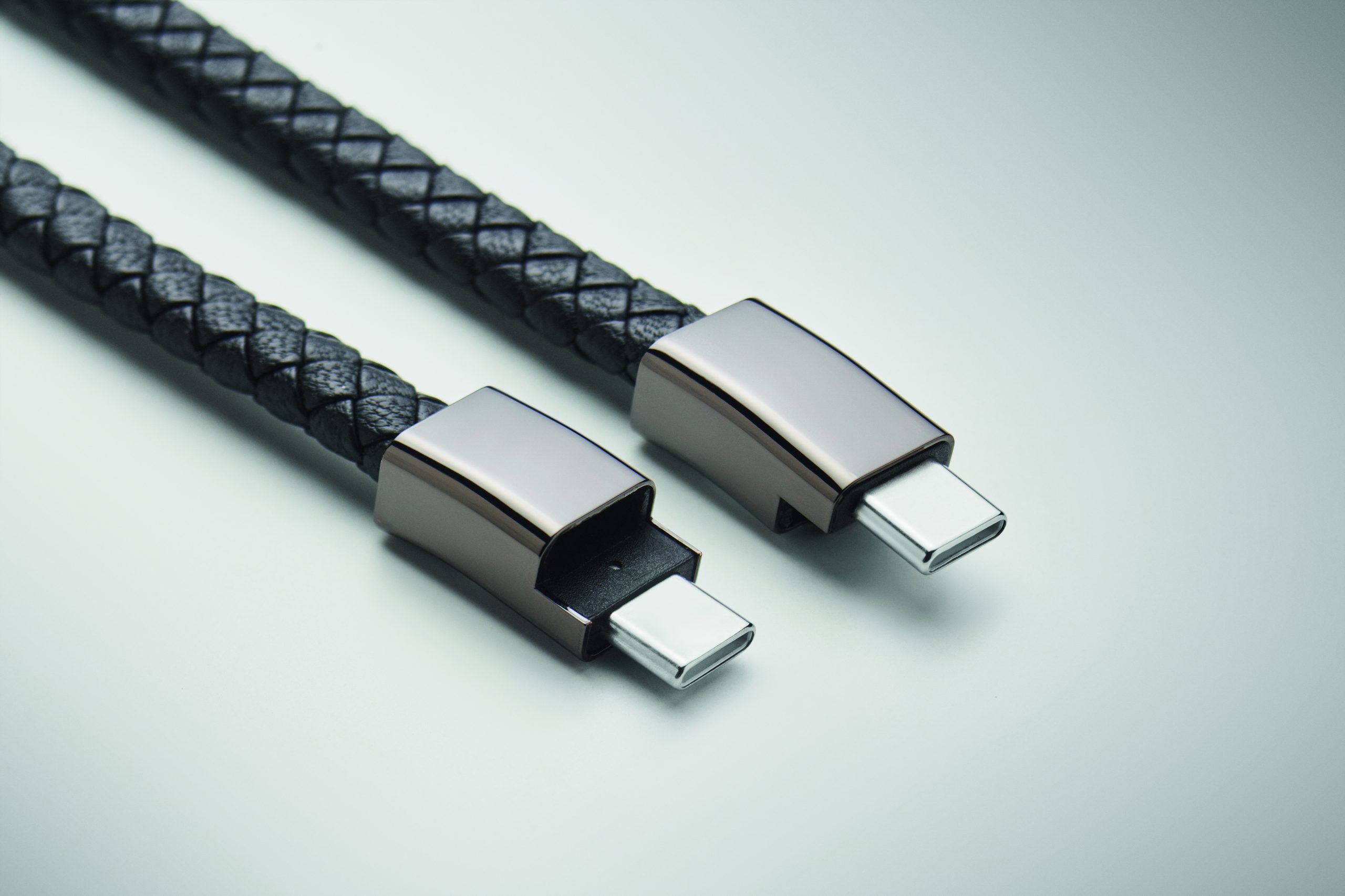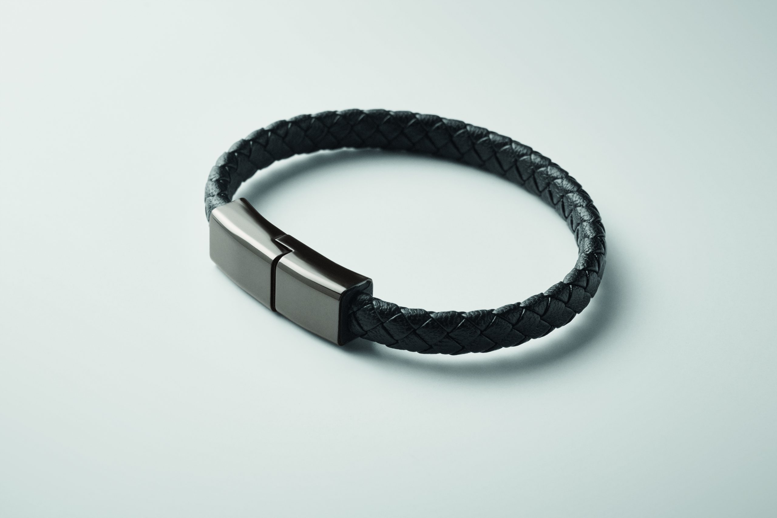 Bransoletka z kablem ładującym 60 W typu C do typu C, wykonana z PU z plecionym detalem ze stopu cynku. Obwód nadgarstka ok.: 21 cm.