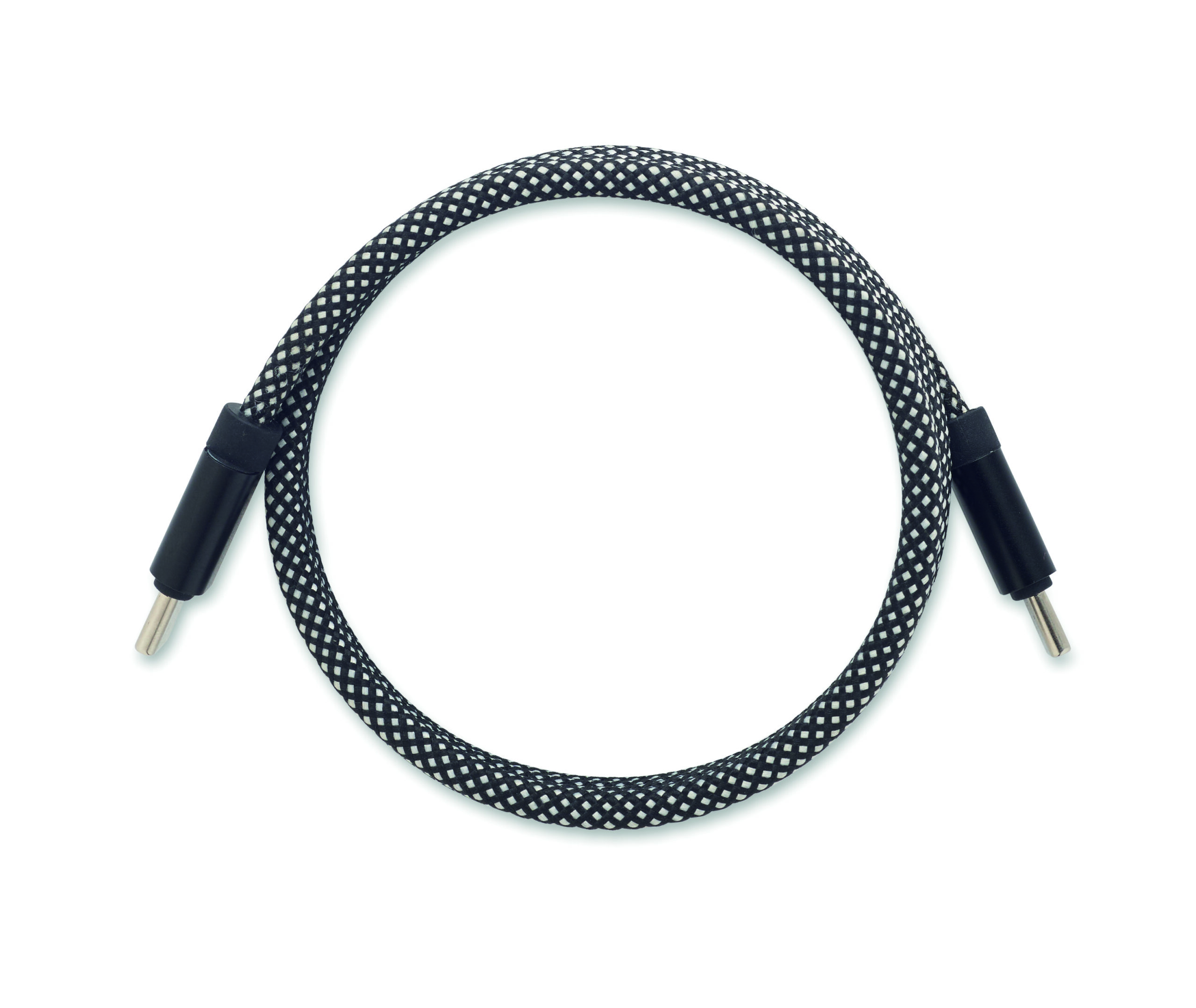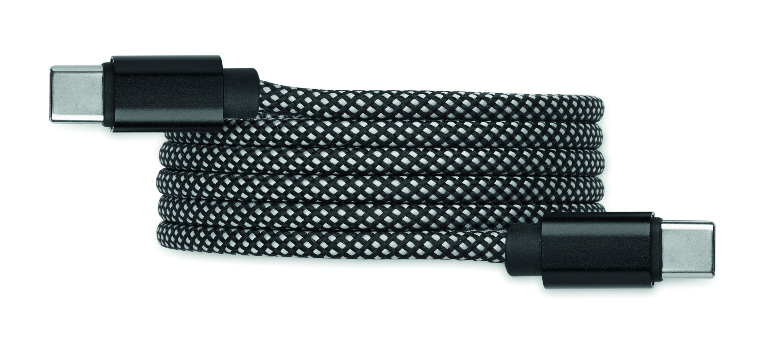 Nieplączący się pleciony kabel magnetyczny wykonany z RPET z certyfikatem GRS i aluminium. Typ C do C, szybkie ładowanie 60 W, długość 1 m. Zawsze starannie ułożony i nigdy się nie plącze.