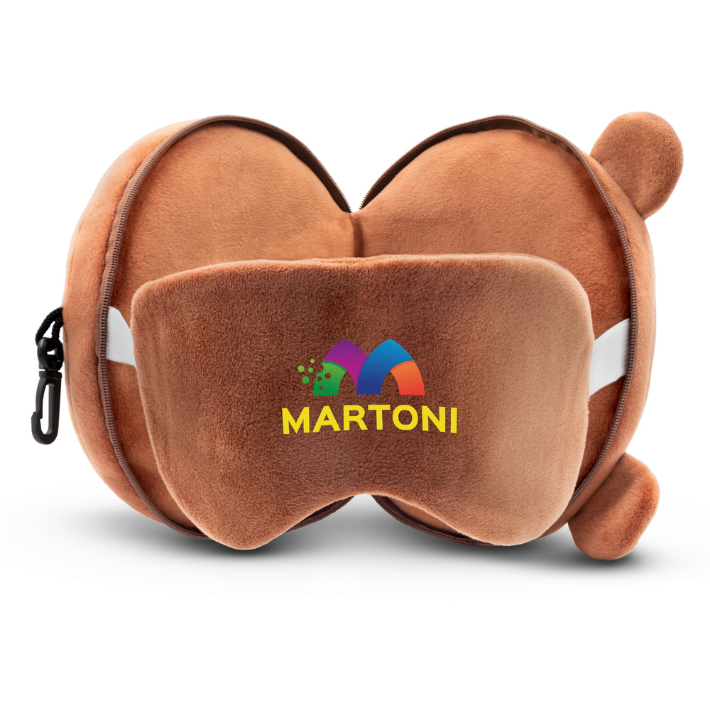 Pluszowa poduszka, zagłówek podróżny, maska na oczy, miś | Ren