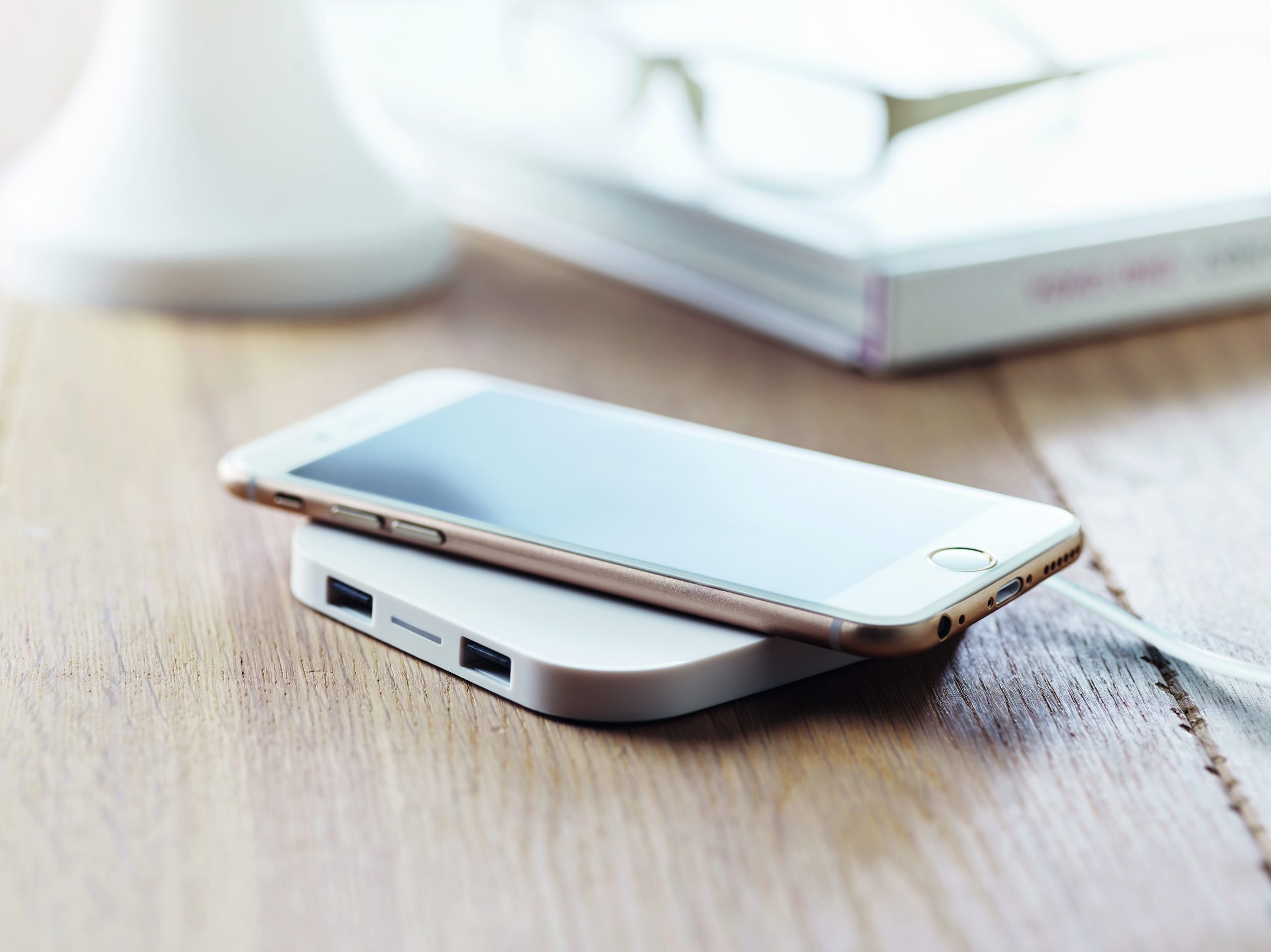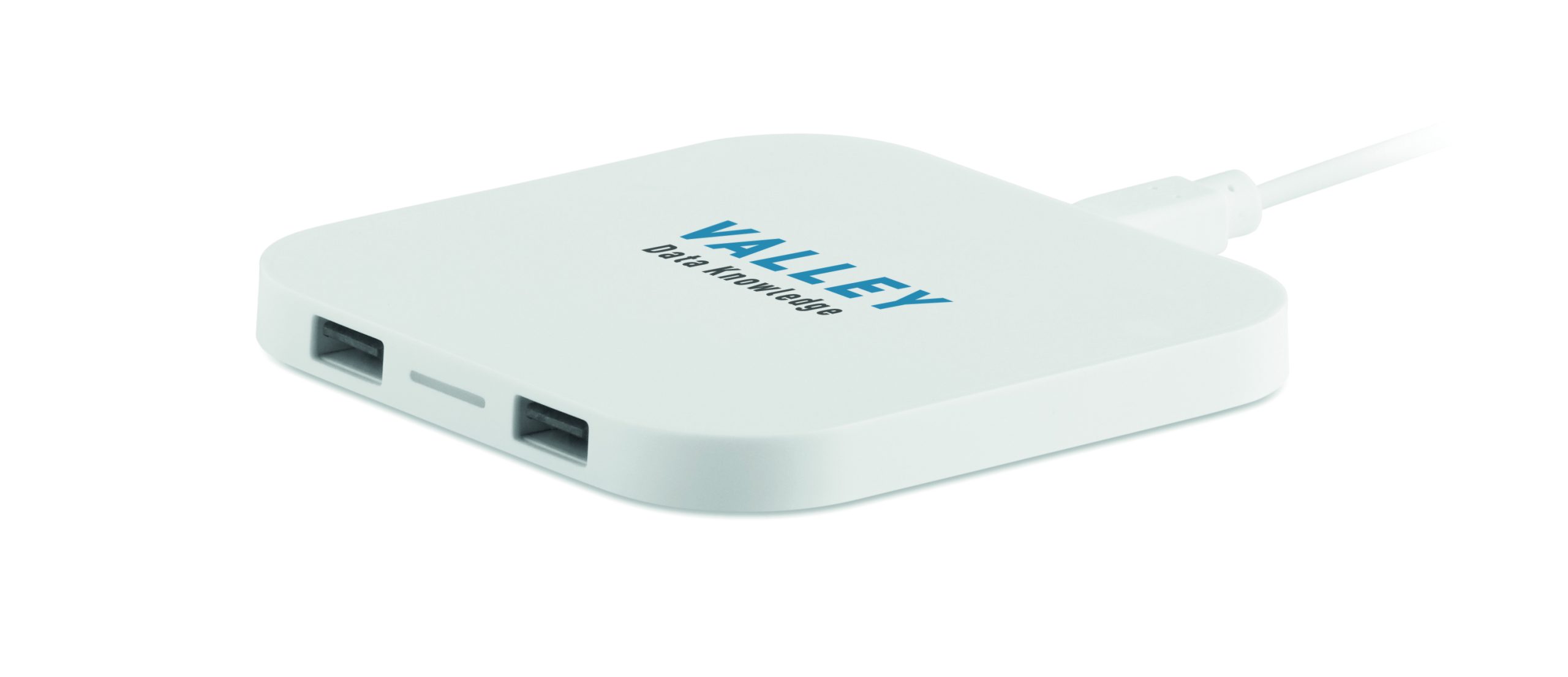 Ładowarka bezprzewodowa z 2 portami USB 2.0. oraz kabel do podłączenia do komputera. Bezprzewodowe ładowanie smartfona. Wyjście: DC5V/1A (5W).