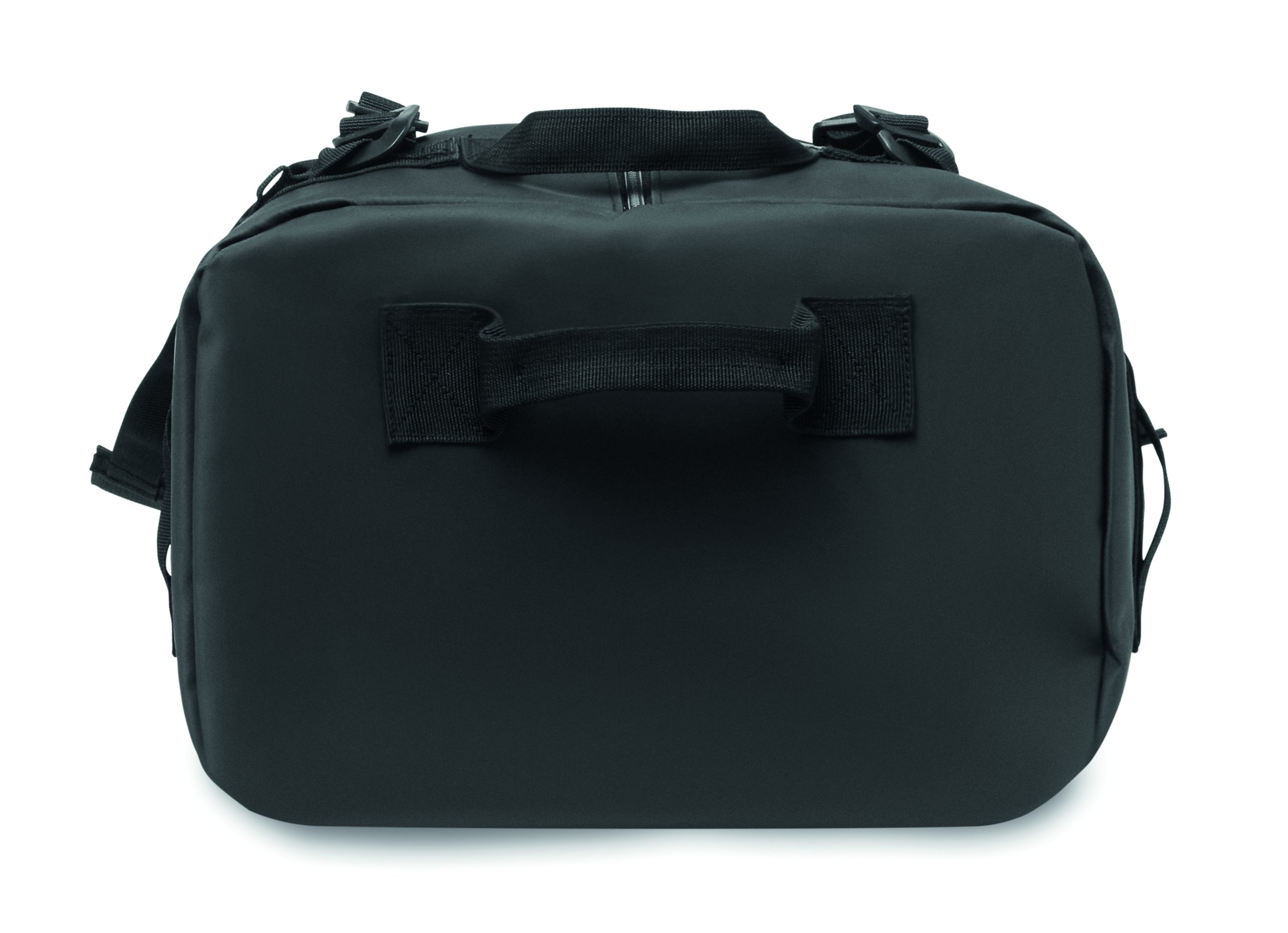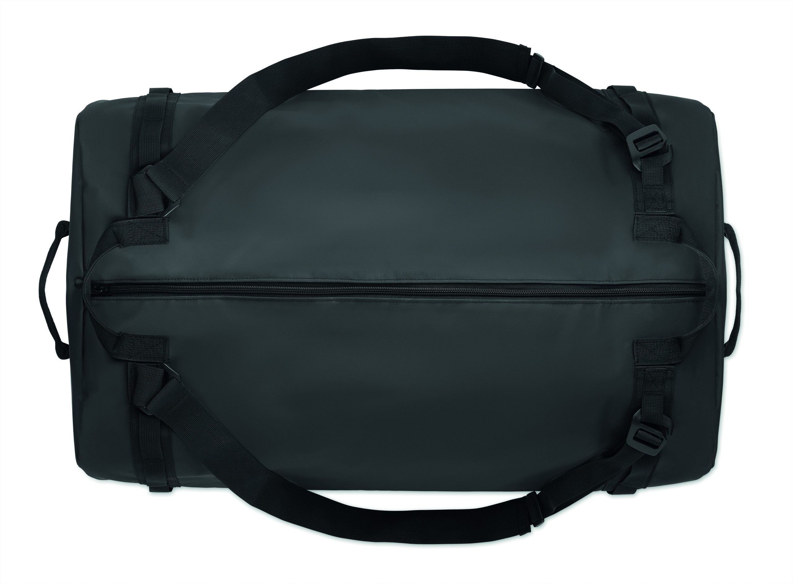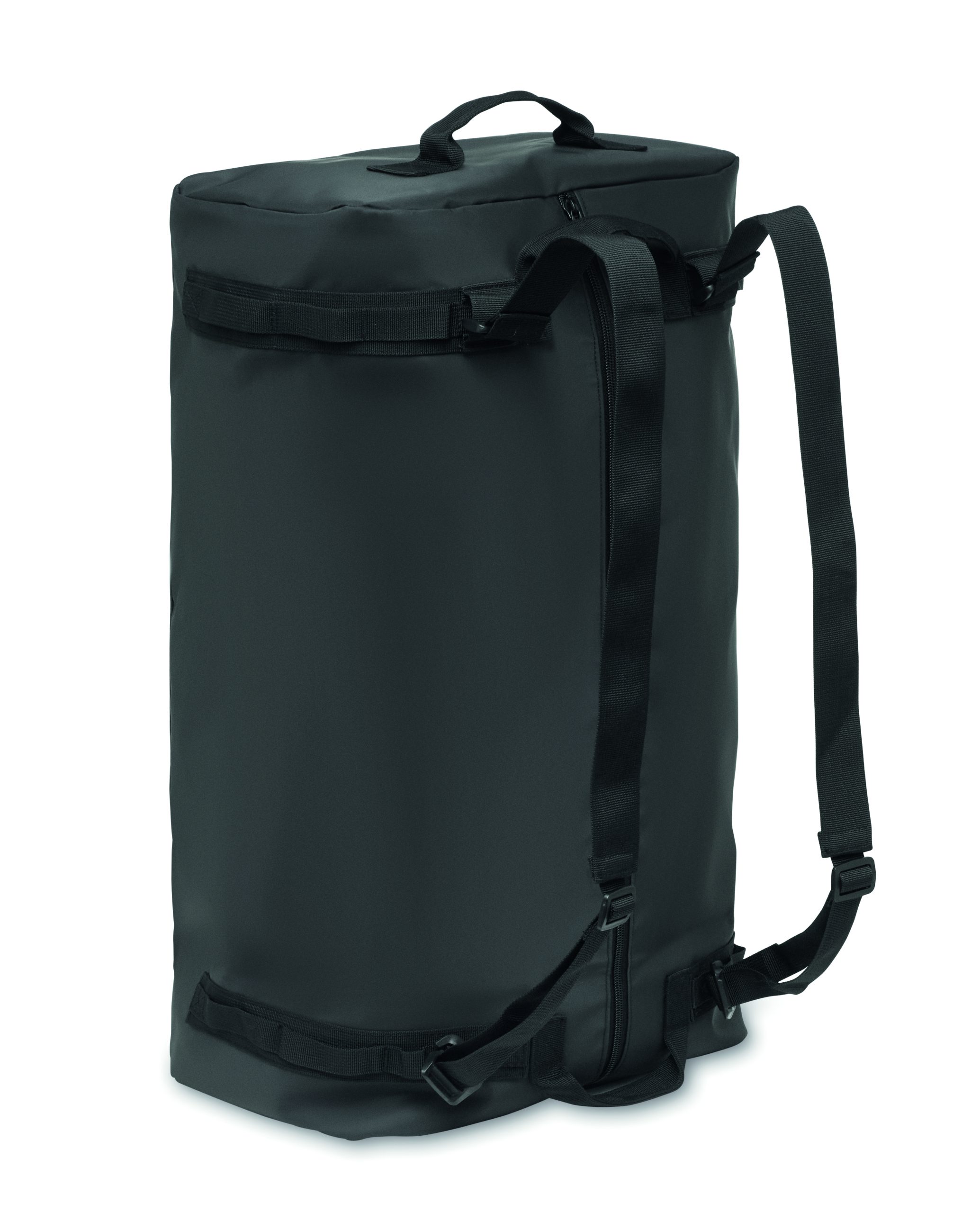 Duża torba sportowa lub podróżna, która może być również używana jako plecak, z tarpaulin 50C z wewnętrzną przegrodą zapinaną na zamek. Posiada odpinany i regulowany pasek na ramię oraz podszewkę z RPET.