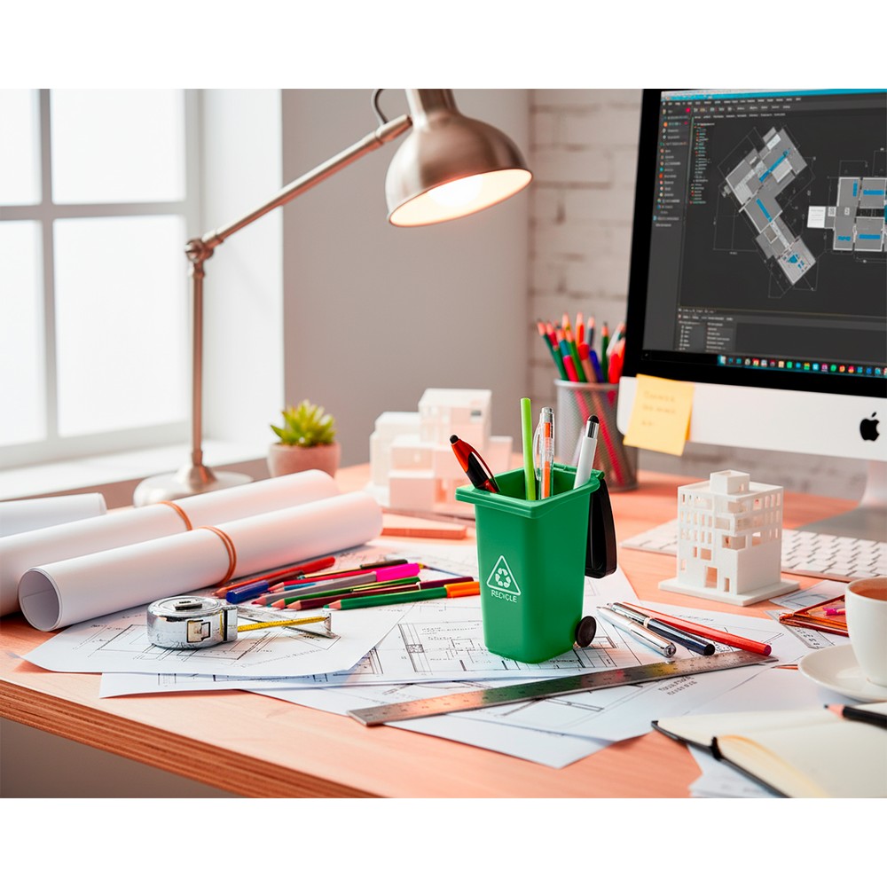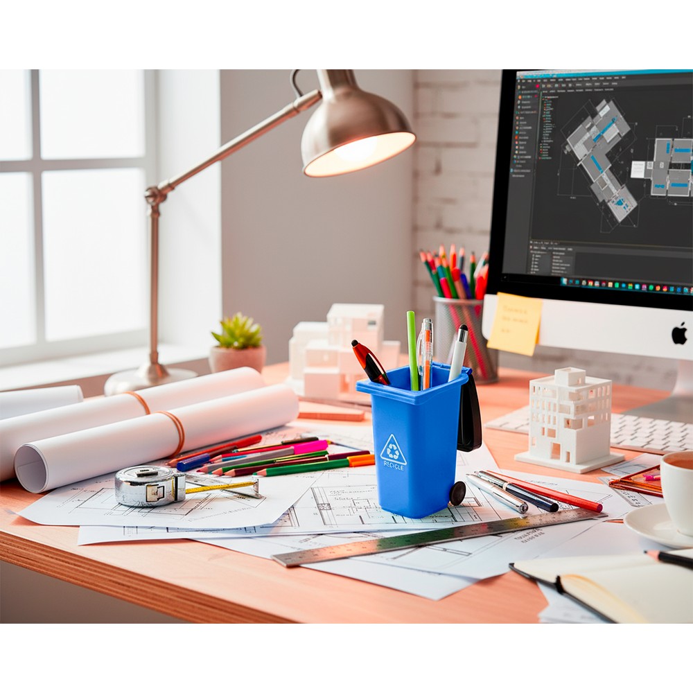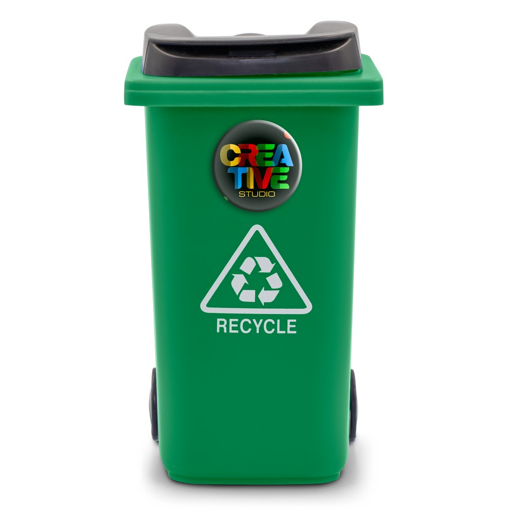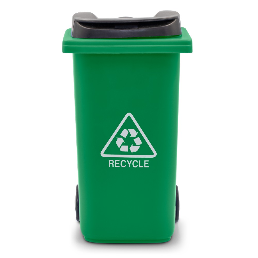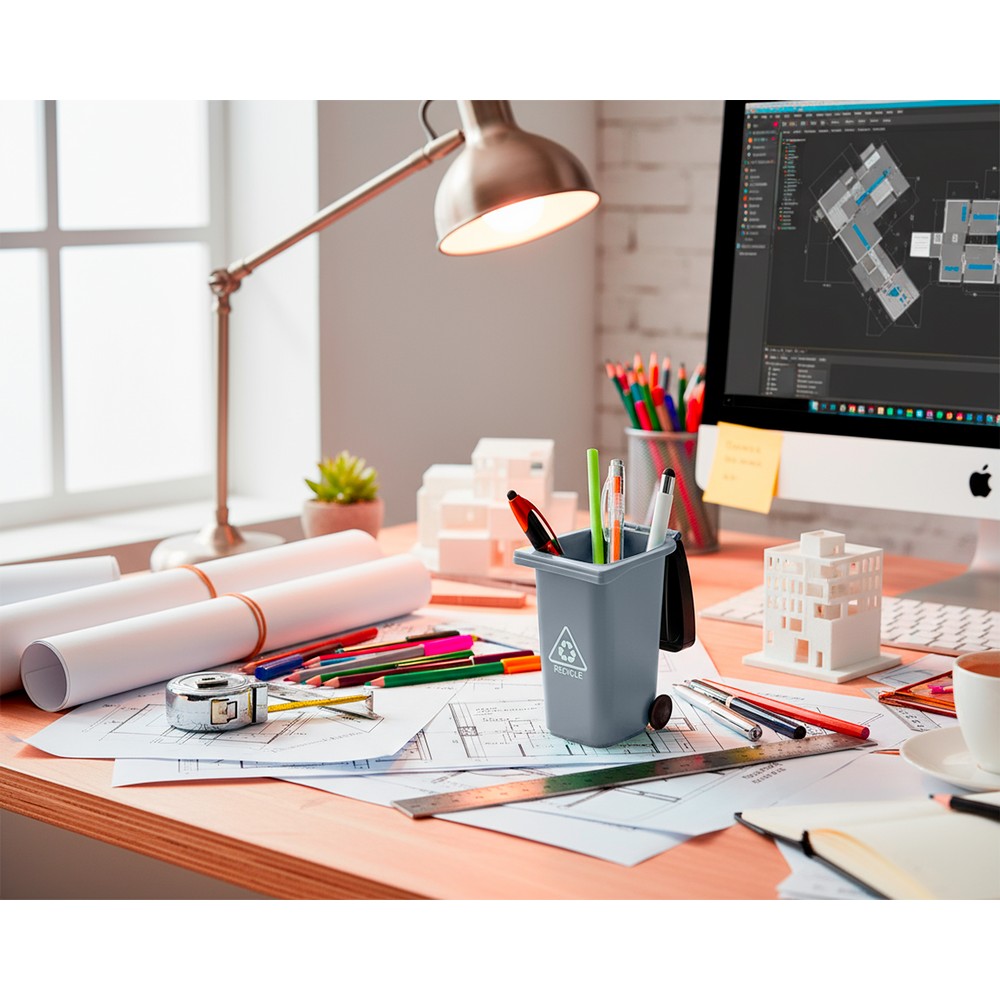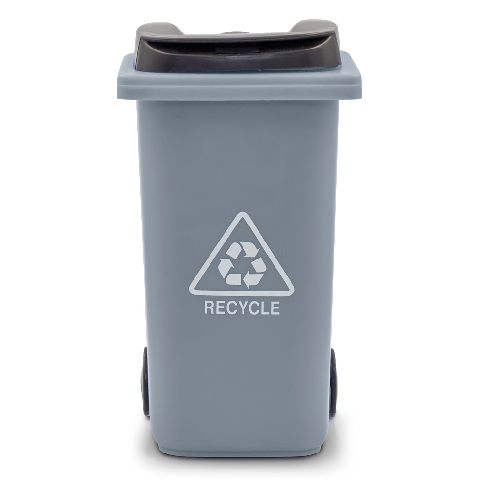 Pojemnik na przybory do pisania „kontener na śmieci” na kółkach, posiada pokrywkę i matowe wykończenie, produkt wykonany z PP