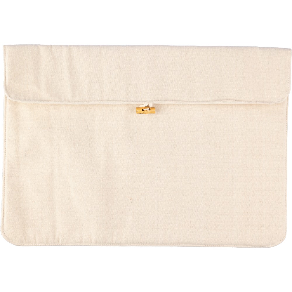 Pokrowiec na laptopa 15″, pomaga uniknąć zabrudzeń i kurzu, minimalistyczny design, estetyczny sposób na przechowywanie laptopa, notatek lub podręczników do nauki, z bambusowym elementem i sznurkowym zapięciem, produkt wykonany z bawełny 220 gr/m²
