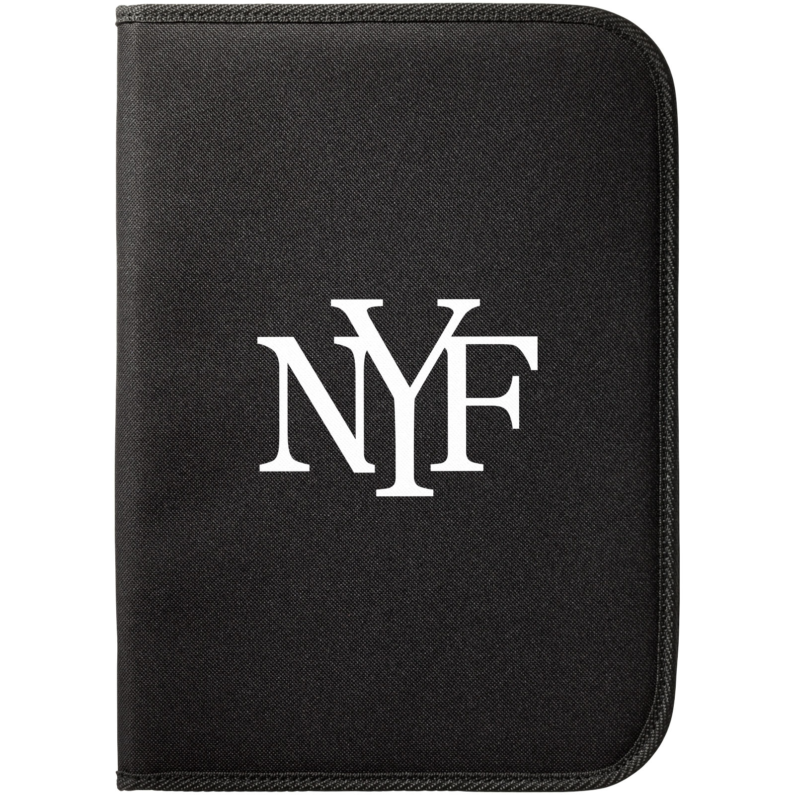Portfolio zapinane na zamek z kieszeniami na dokumenty oraz 20-kartkowym notesem w linie. Zestaw nie zawiera długopisu i akcesoriów.
