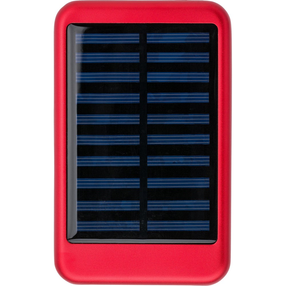 Power bank 4000 mAh, ładowarka słoneczna, niebieskie diody wskazujące poziom naładowania, porty USB i USB-C, wejście DC5V/1A, wyjście 5V/1A kabel USB w komplecie, produkt wykonany z ABS