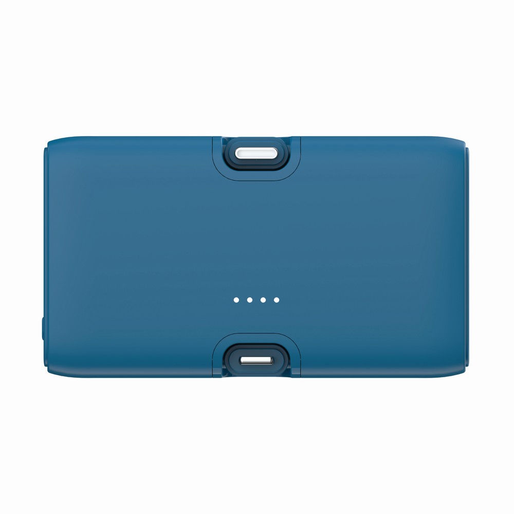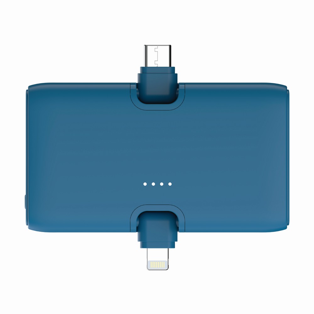 Power bank 5000 mAh, szybkie ładowanie do 20W, zintegrowane wyjścia USB-C i iOS, stojak na telefon, wyjście USB-C, wykonana z ABS z recyklingu, całkowita zawartość materiałów z recyklingu obliczona na podstawie wagi całkowitej produktu: 24%