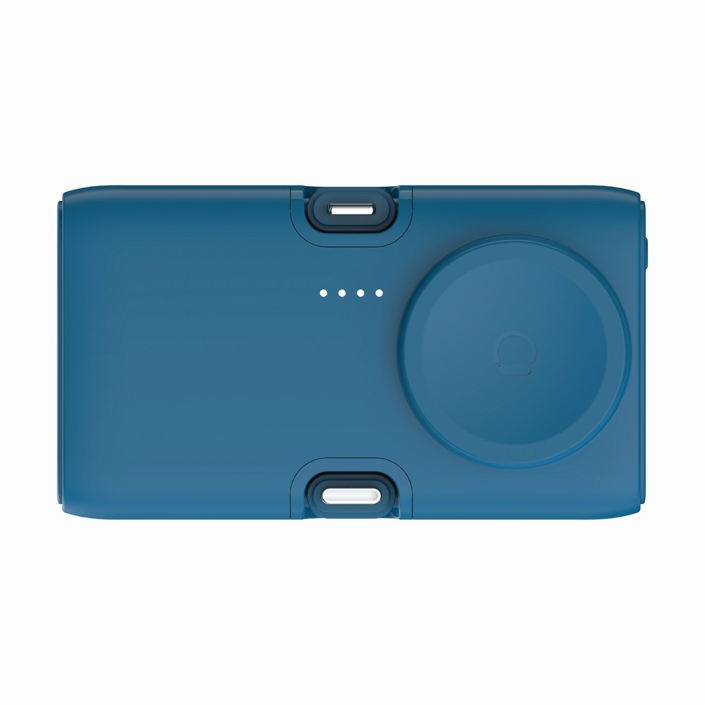 Power bank 5000 mAh, zintegrowana ładowarka bezprzewodowa do zegarka (tylko iOS), szybkie ładowanie do 20W, zintegrowane wyjścia USB-C i iOS, stojak na telefon, wyjście USB-C, działa z urządzeniami posiadającymi możliwość ładowania indukcyjnego, wykonana z ABS z recyklingu, całkowita zawartość materiałów z recyklingu obliczona na podstawie wagi całkowitej produktu: 24%
