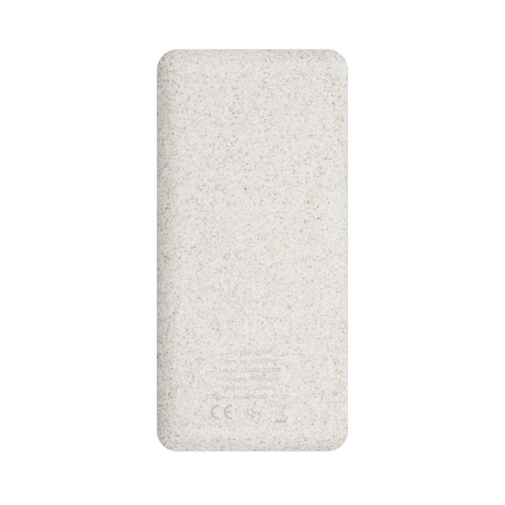 Power bank 8000 mAh z włókien słomy pszenicznej, wyjście USB, wejście micro USB 5V/2A, wejście/wyjście USB-C 5V/3A, kabel micro USB w komplecie