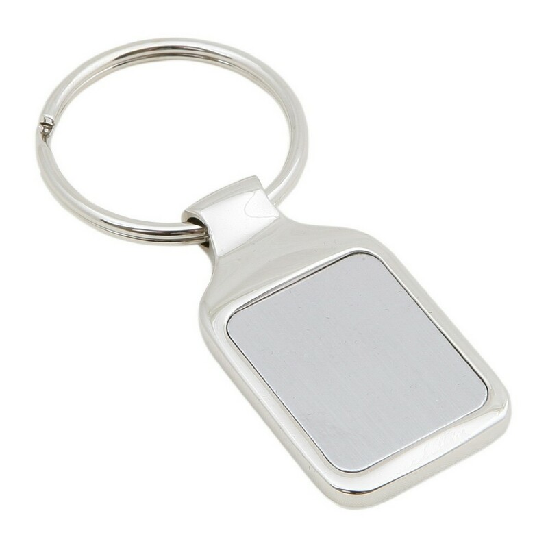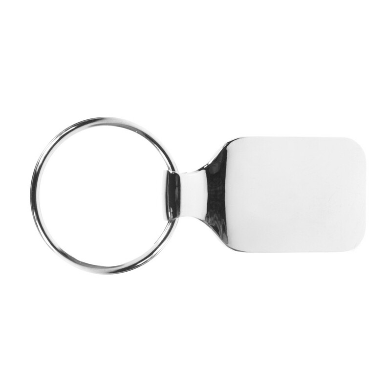 Prostokątny brelok do kluczy z dedykowanym miejscem pod znakowanie, czarne pudełko podarunkowe w komplecie, produkt wykonany z metalu