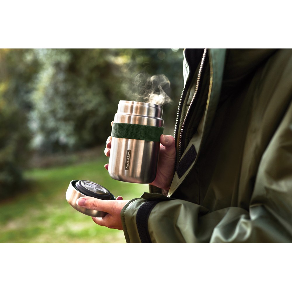 Próżniowy pojemnik na żywność 400 ml z łyżką, podwójne ścianki, wnętrze ze stali nierdzewnej, szczelny, utrzymuje temperaturę napojów ciepłych do 6 h oraz zimnych do 8 h, wyłącznie mycie ręczne, łyżka nadaje się do mycia w zmywarce