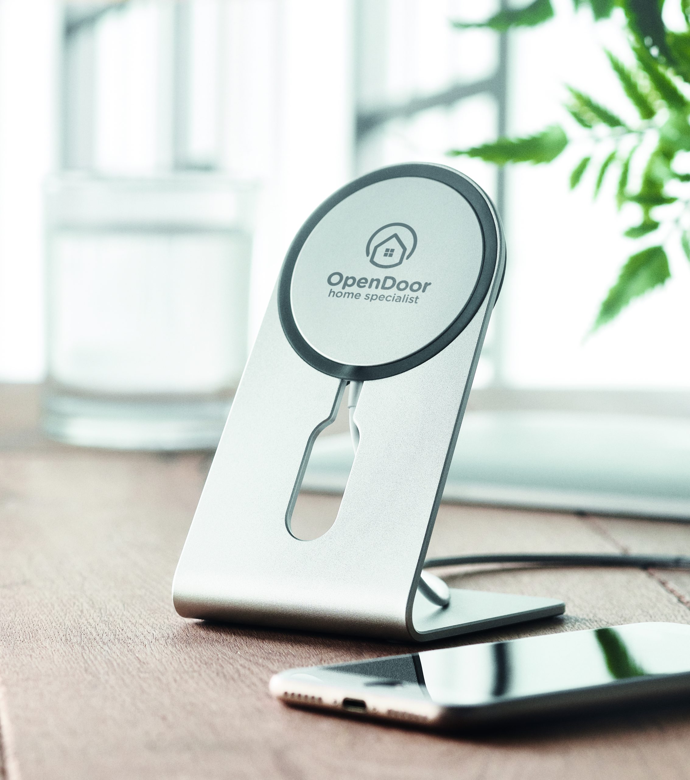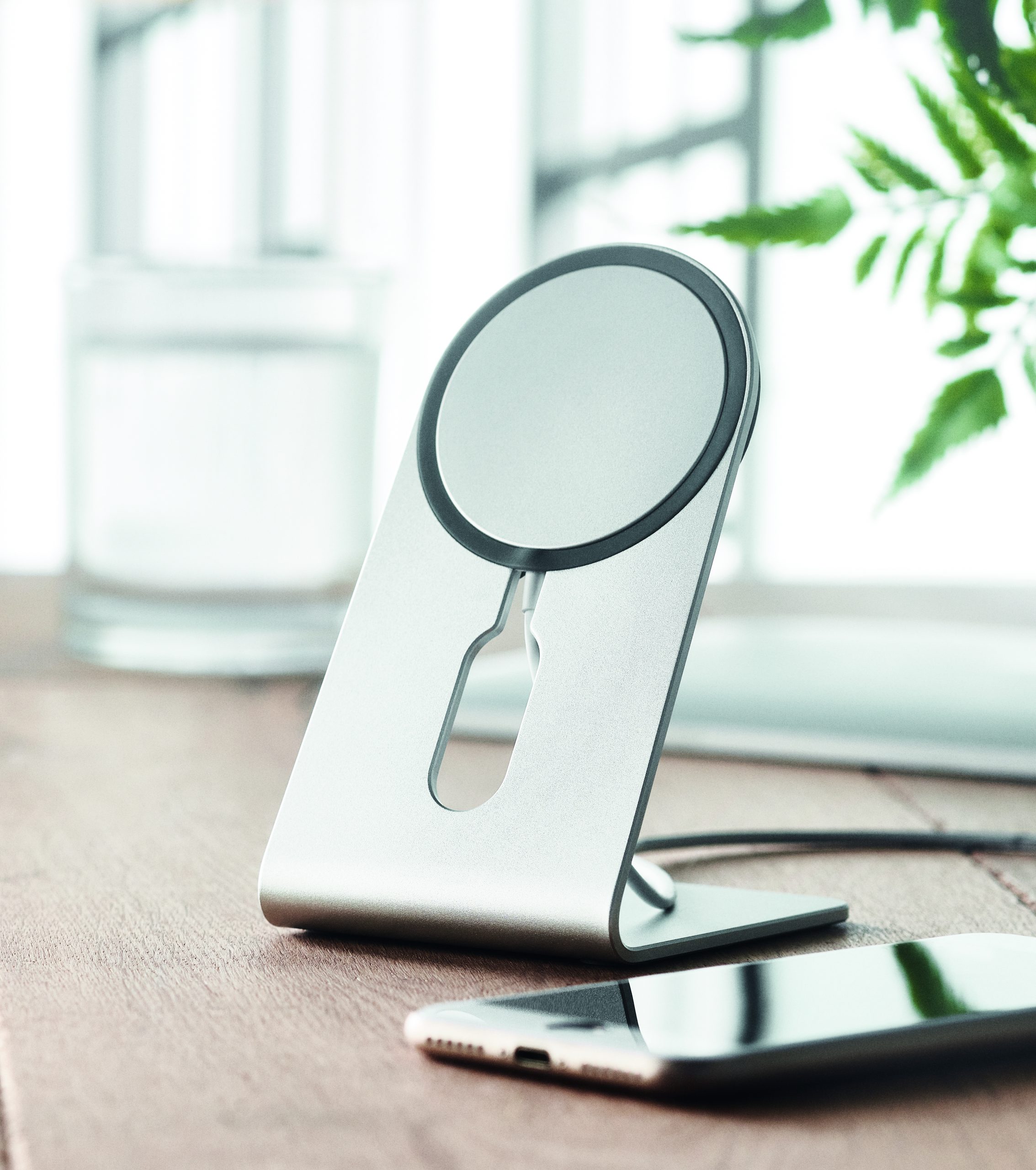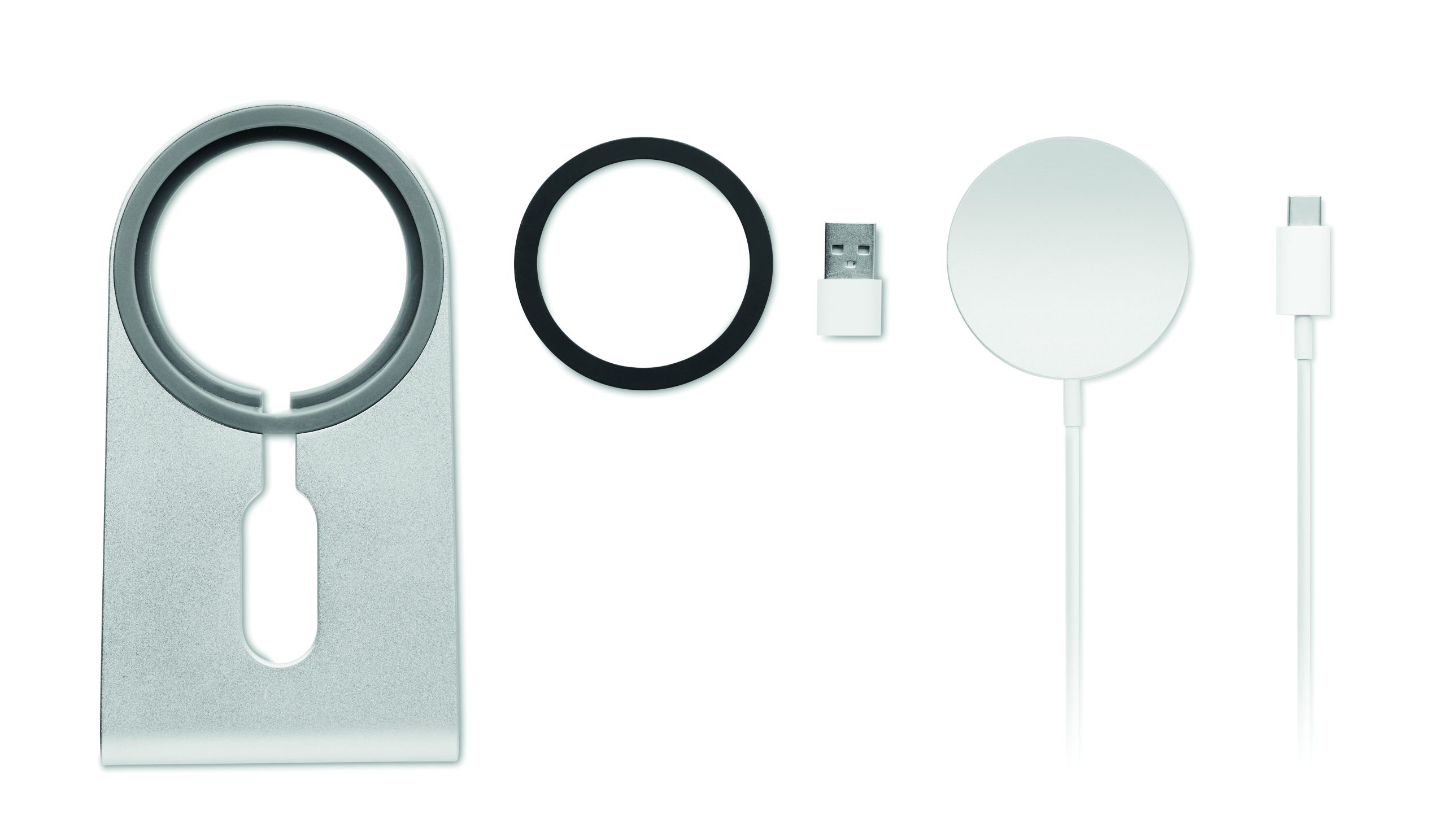 Magnetyczna aluminiowa przenośna bezprzewodowa ładowarka 15W z podstawką pod telefon. Zawiera magnetyczne metalowy pierścień do obsługi ładowania innych niemagnetycznych telefonów bezprzewodowego ładowania. Wyjście: 9V/1.67A (15W) do szybkiego ł