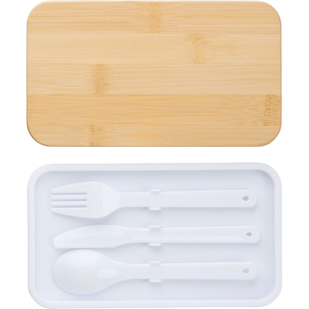 Pudełka śniadaniowe 2 w 1, 2×400 ml, bambusowe wieczko, sztućce
