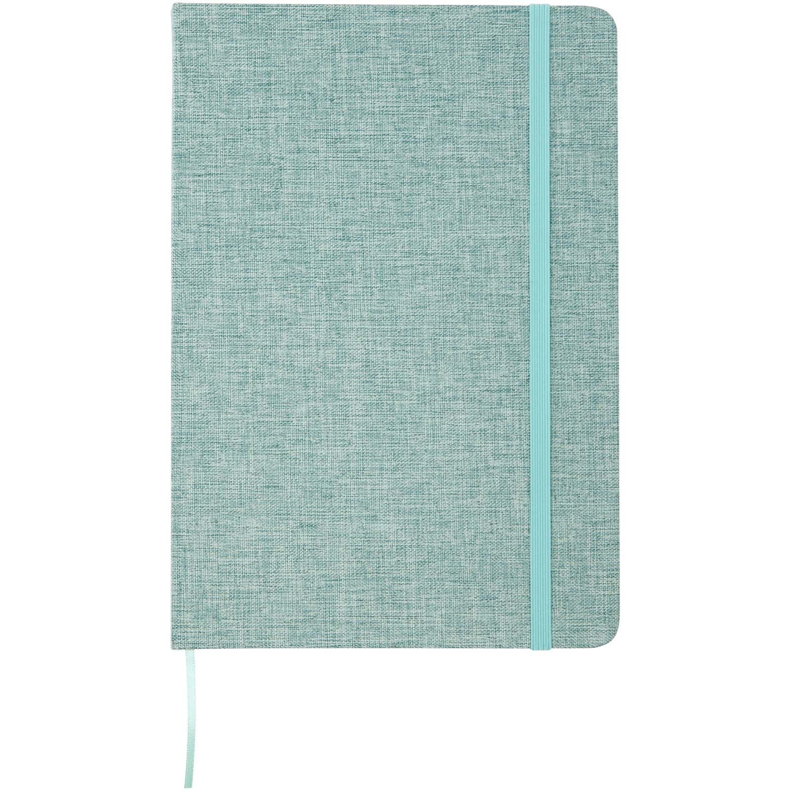 Notatnik A5 w twardej oprawie wykonany z bawełny pochodzącej z recyklingu, z 80 kartkami w linie z papieru o gramaturze papieru 70 g/m². Notatnik posiada elastyczne zamknięcie, wstążkę i zaokrąglone rogi.