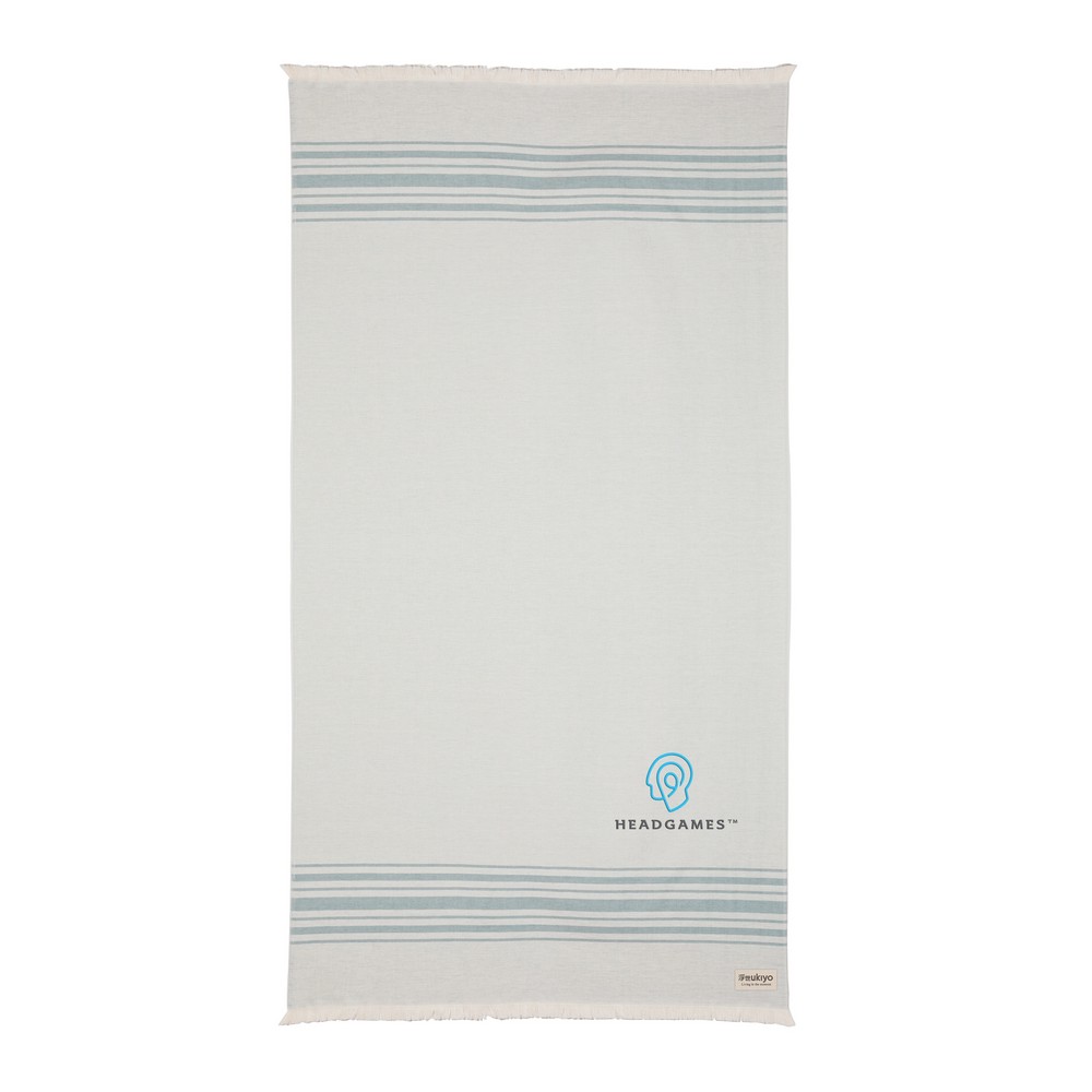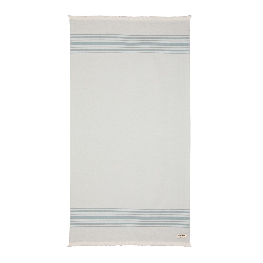 Ręcznik, lekki, wysoce chłonny, odporny na piasek i szybkoschnący, można go wykorzystać również jako koc czy obrus, wykonany z mieszanki 88% bawełny z certyfikatem OEKO-TEX (w procesie produkcji nie są wykorzystane żadne szkodliwe substancje lub barwniki) oraz w 12% z bawełny z recyklingu, dzięki zastosowaniu technologii śledzącej AWARE™ wykorzystane włókna są identyfikowalne z pochodzenia, 2% wpływów z każdego sprzedanego produktu jest przekazywane na rzecz Water.org, można prać w pralce, wymiar 100 x 180 cm (wyprodukowany w Europie / made in Europe)