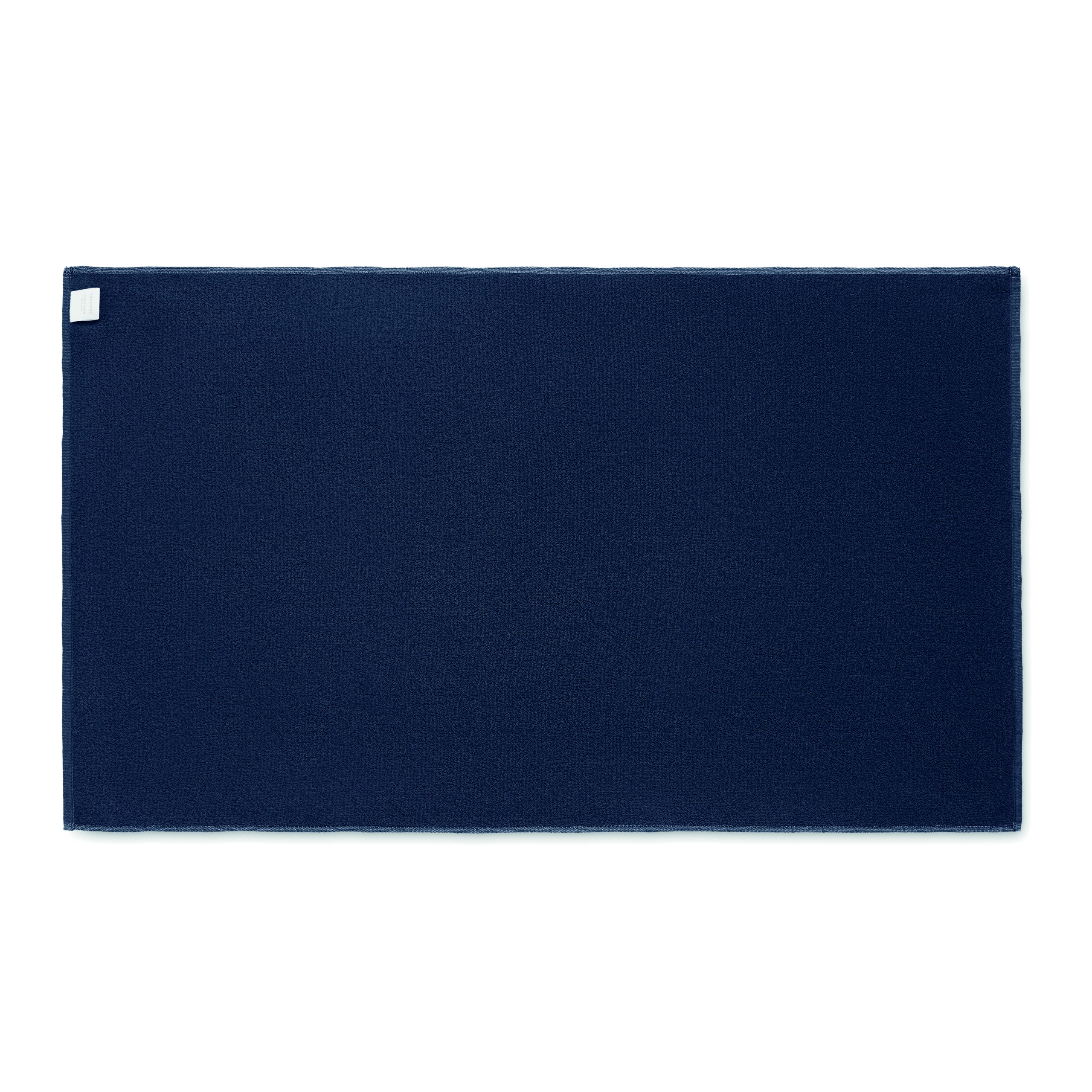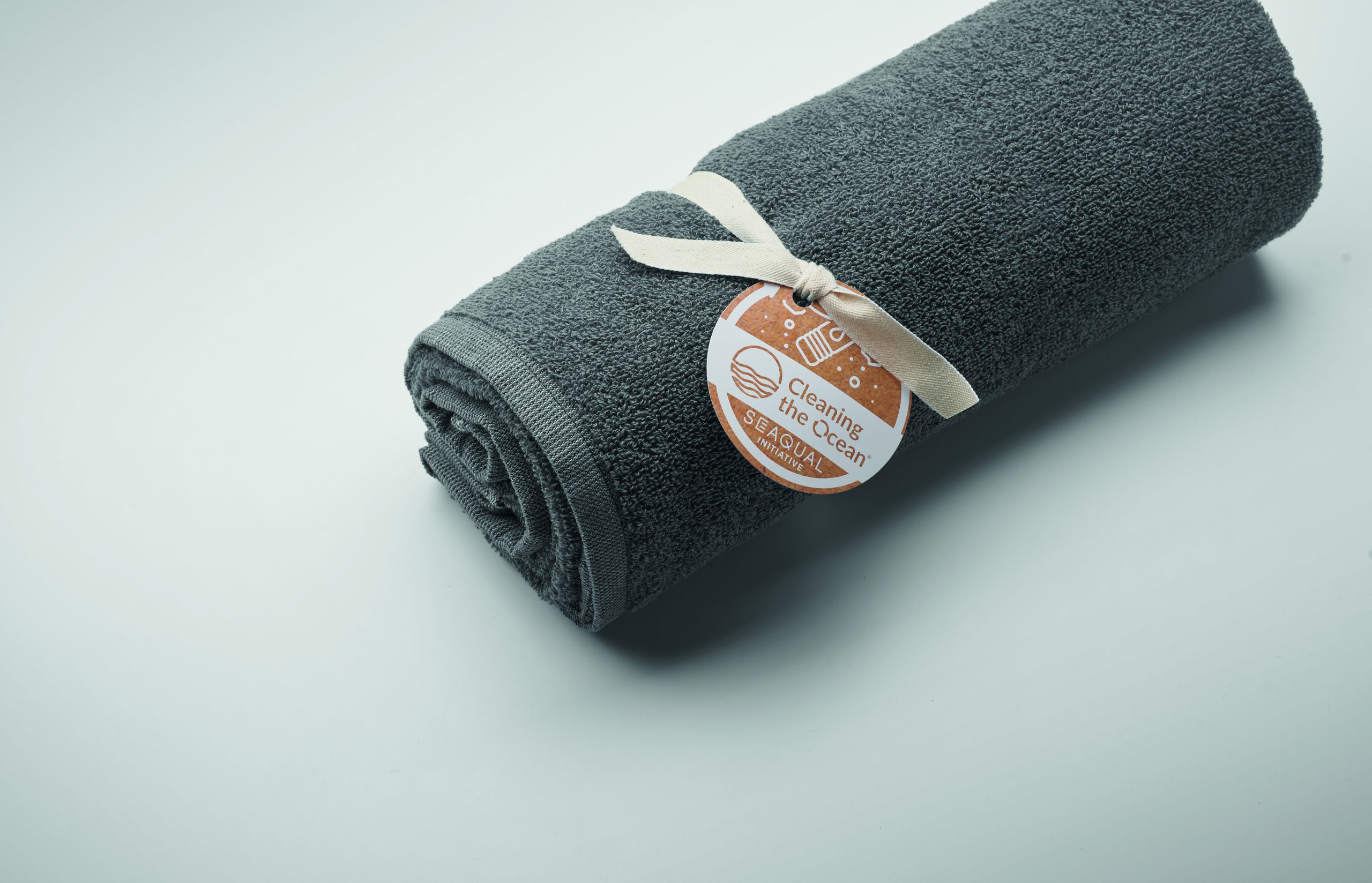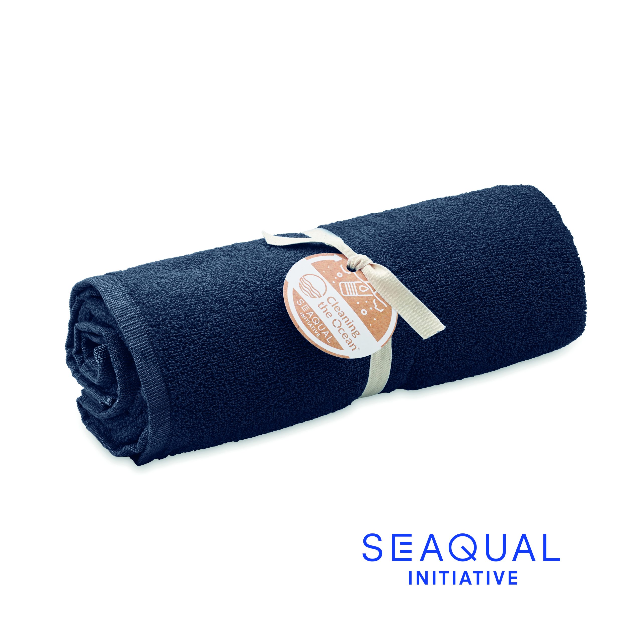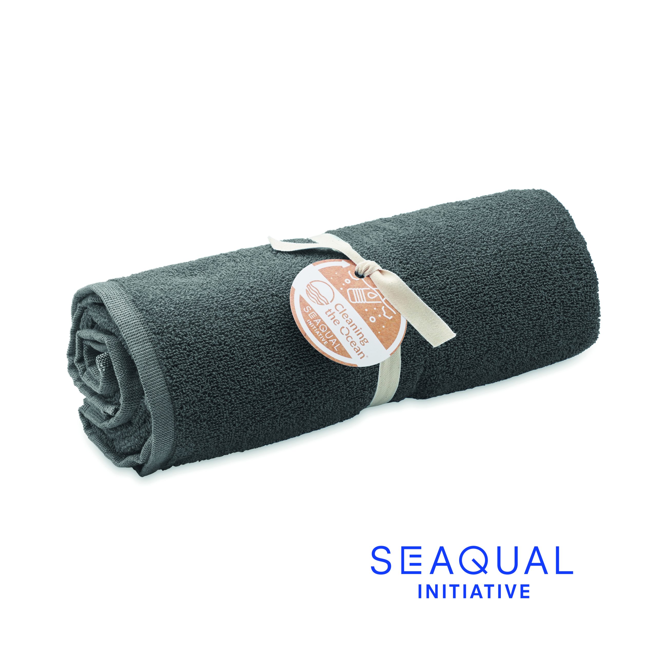 Ekologiczny żakardowy ręcznik kąpielowy lub plażowy z recyklingu. 70% bawełna z recyklingu i 30% poliester z recyklingu SEAQUAL® YARN. 500 gr/m². 100×170 cm. SEAQUAL INITIATIVE współpracuje z organizacjami oczyszczania oceanów na całym świecie, aby nadać wartość odzyskiwanym odpadom. Wyprodukowano w UE.