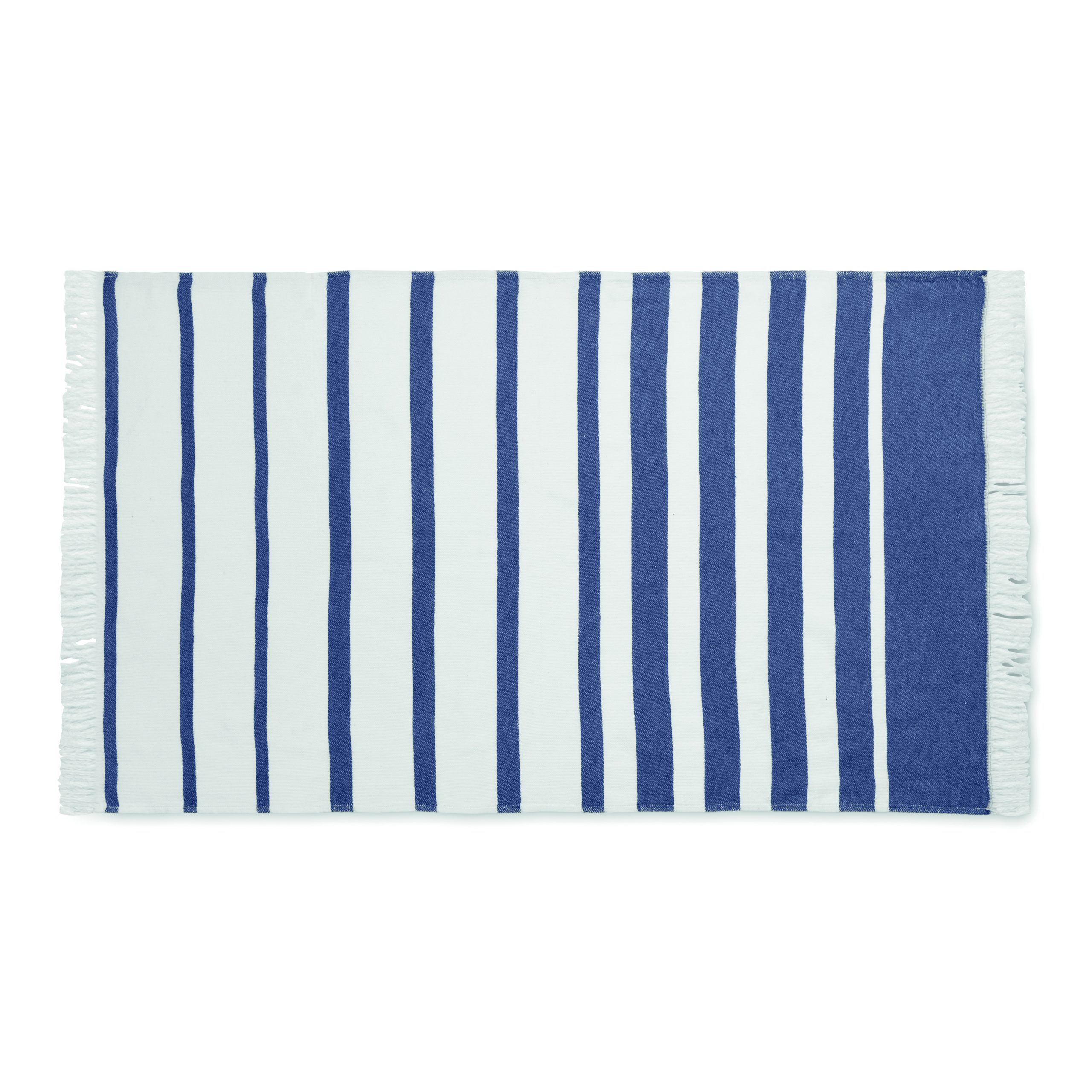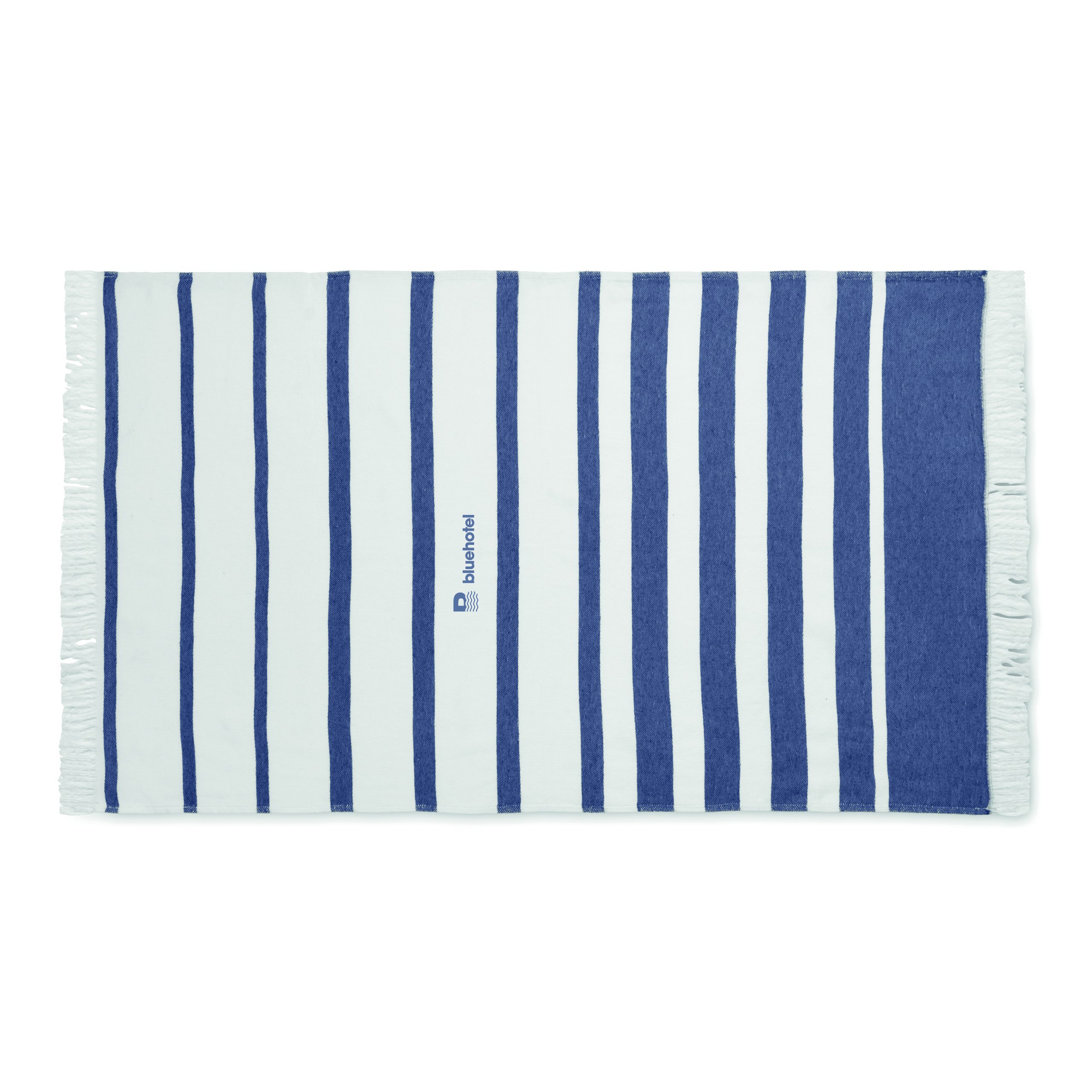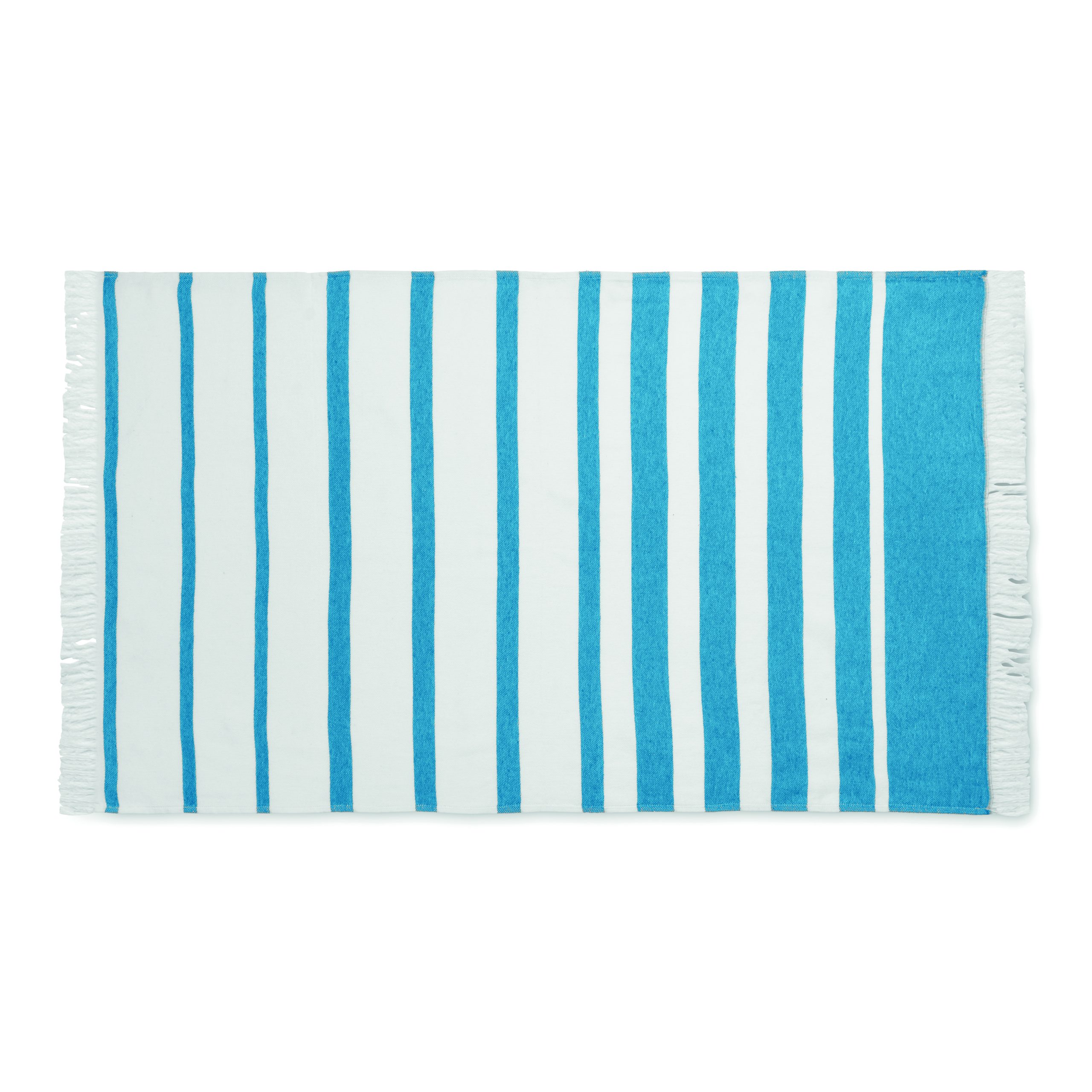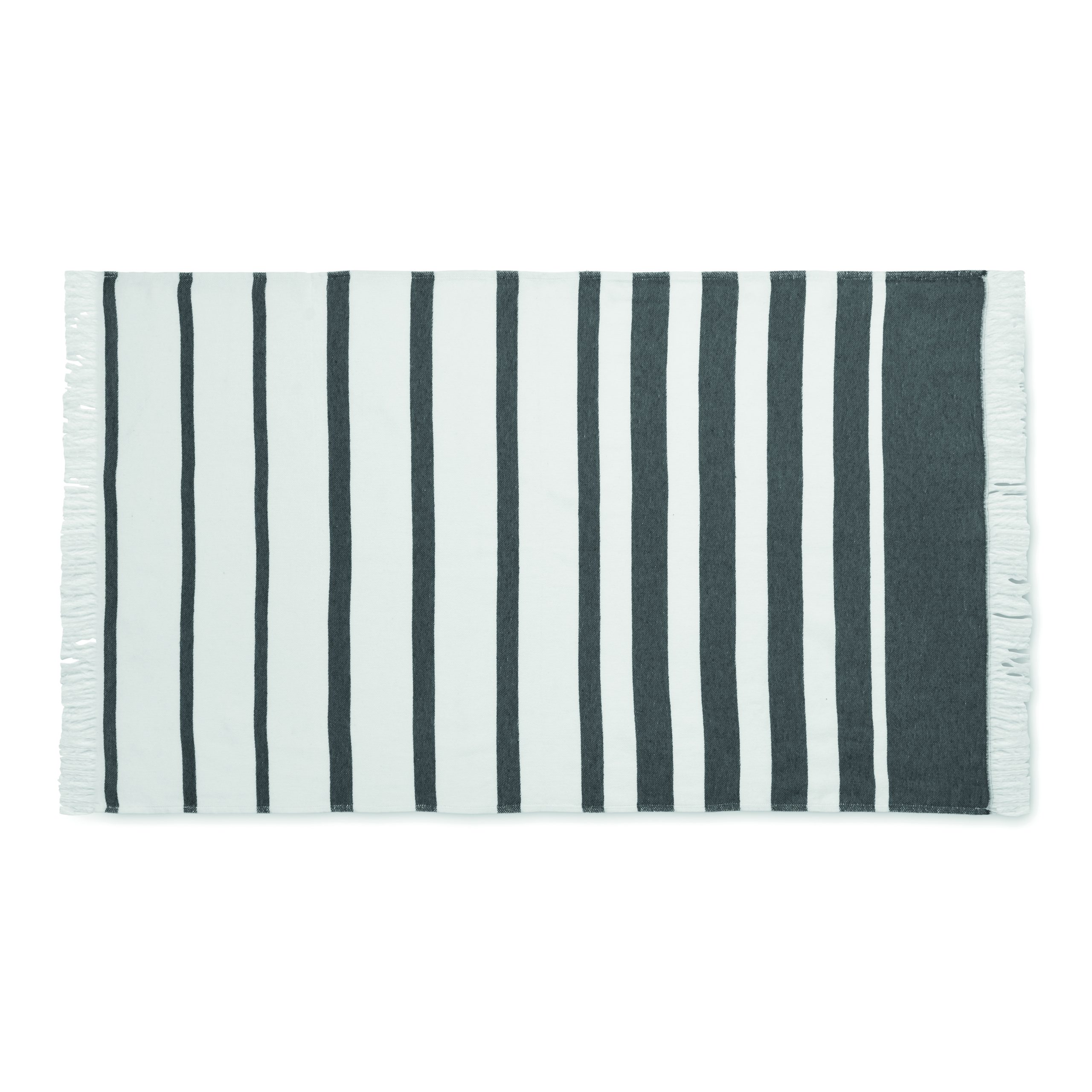 Ręcznik plażowy typu hammam z materiałów pochodzących z recyklingu. 70% bawełny z recyklingu i 30% poliestru z recyklingu poliester SEAQUAL® YARN. 300 gr/m². 100×170 cm. Inicjatywa SEAQUAL współpracuje z organizacjami oczyszczania oceanów na całym świecie, aby nadać wartość odzyskiwanym odpadom. Wyprodukowano w UE.