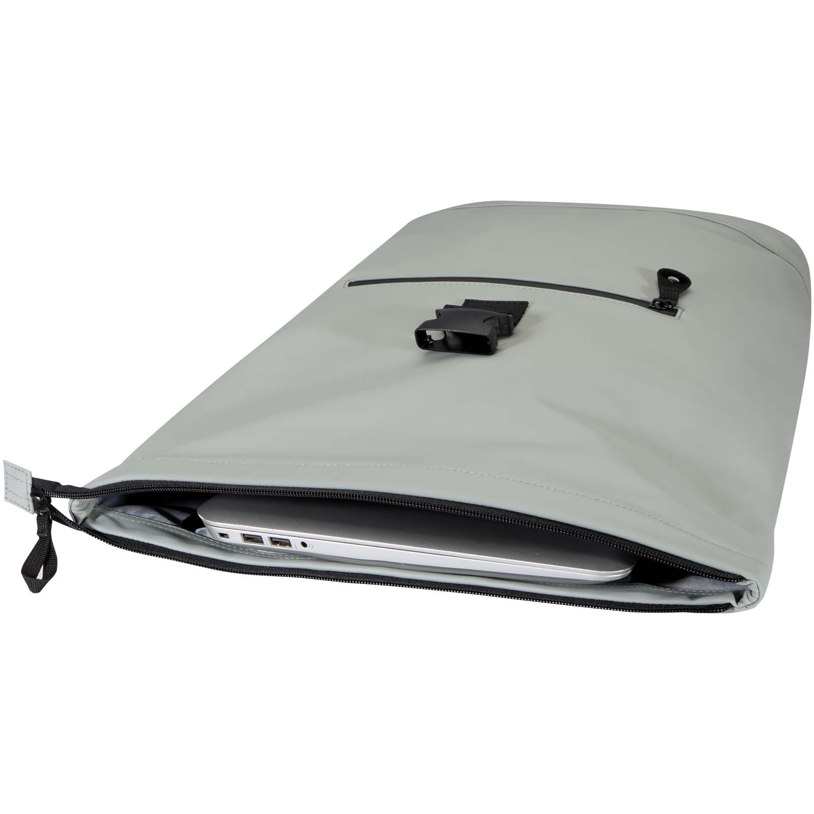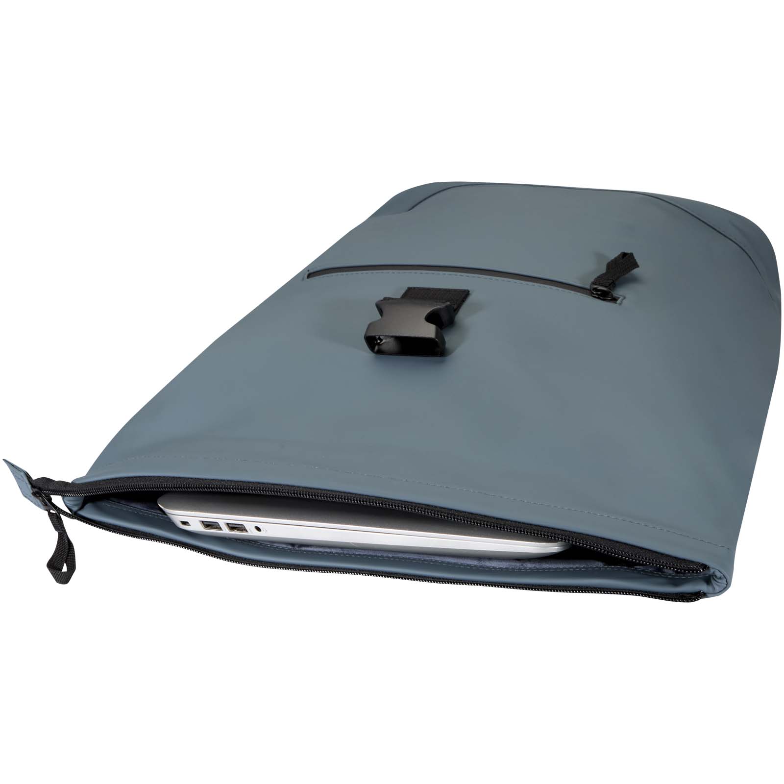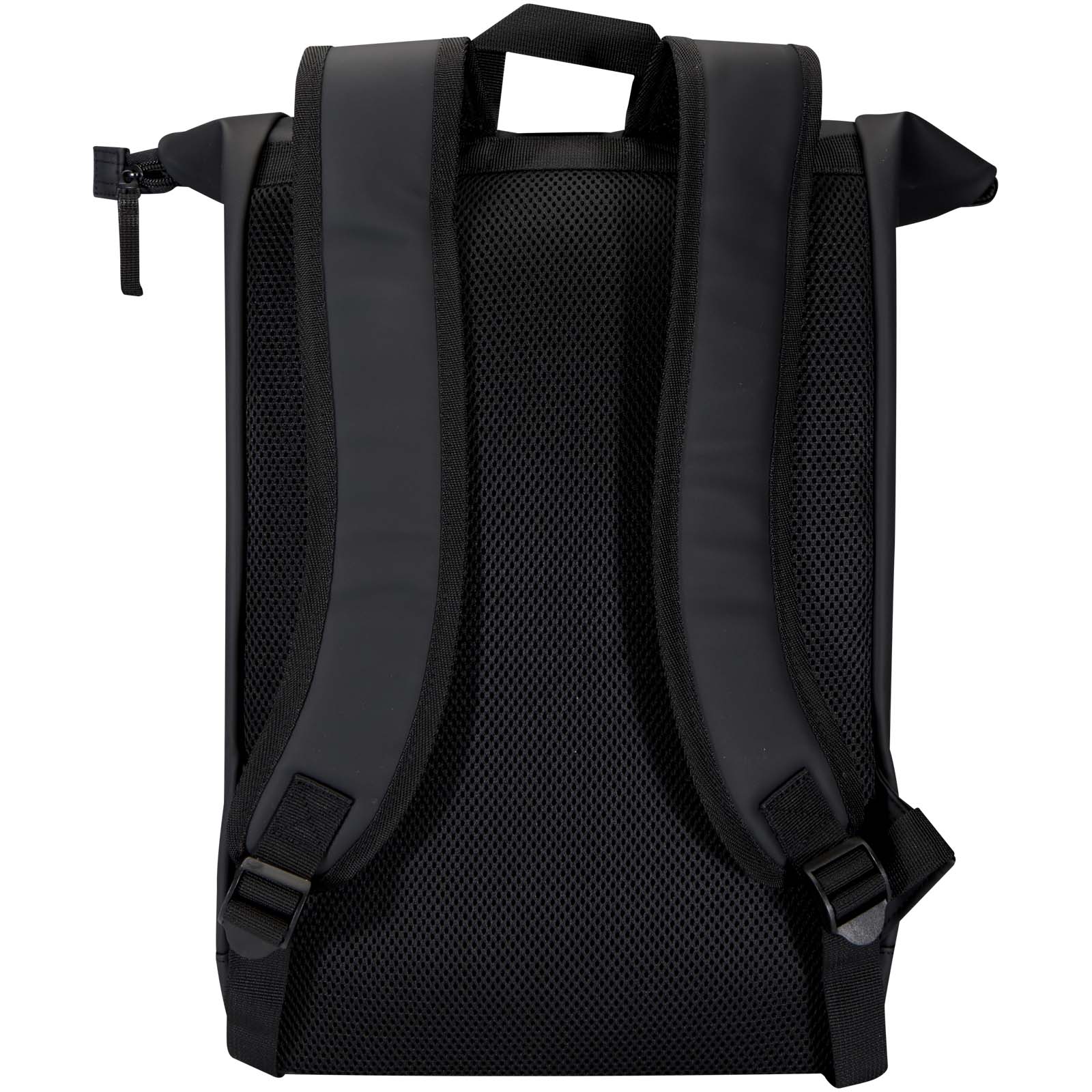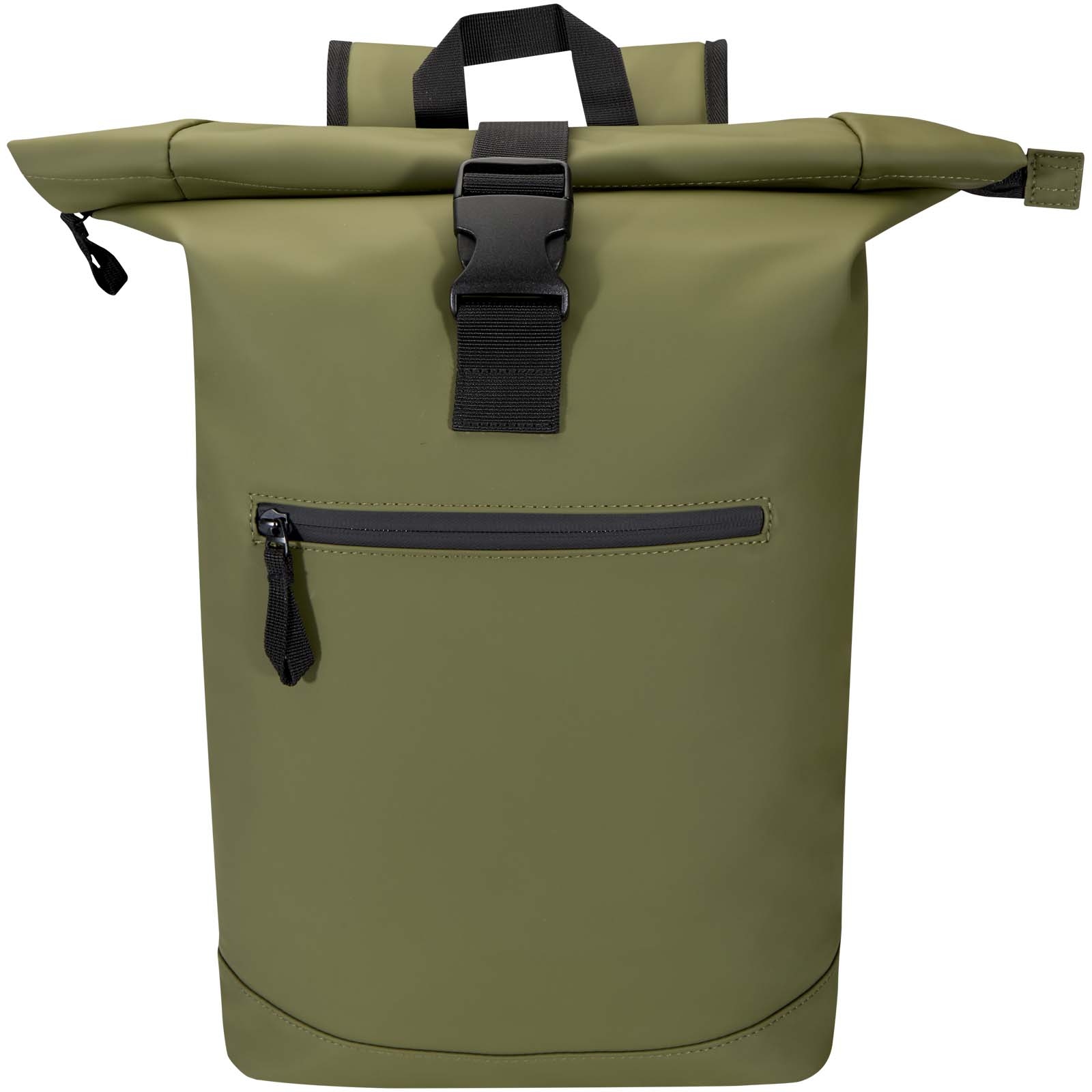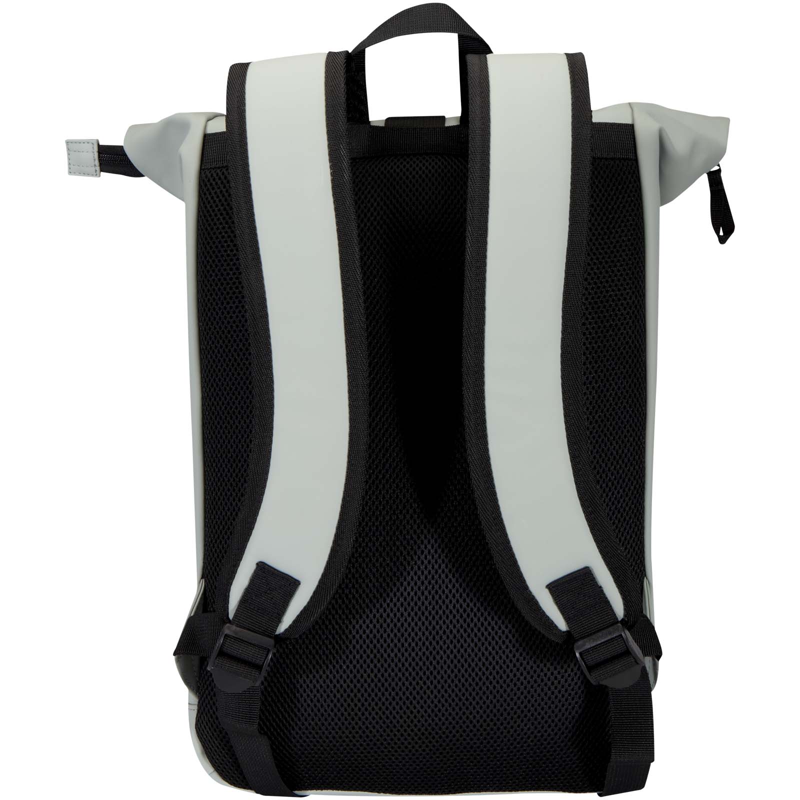 Wykonany z najwyższej jakości przetworzonej skóry PU z podszewką z tworzywa RPET w pasującym kolorze, ten plecak z rolowaną górą łączy nowoczesny styl z długotrwałą wytrzymałością. Wodoodporne wykończenie chroni Twoje najważniejsze rzeczy, a rolowane zamknięcie pozwala na swobodne przechowywanie, co doskonale sprawdzi się w drodze do pracy, w podróży lub na siłowni. Wewnątrz znajduje się wyściełana przegroda, która oddziela laptopa o przekątnej ekranu do 15,6 cala, a dodatkowa kieszeń zapinana na zamek pozwala na utrzymanie porządku w urządzeniach elektronicznych i przedmiotach użytku codziennego. Na zewnątrz znajduje się przednia kieszeń zapinana na suwak z wodoodpornym zamkiem. Umożliwia to bezpieczny dostęp, a wyściełane, regulowane paski na ramiona i oddychająca tylna ścianka gwarantują całodzienny komfort.