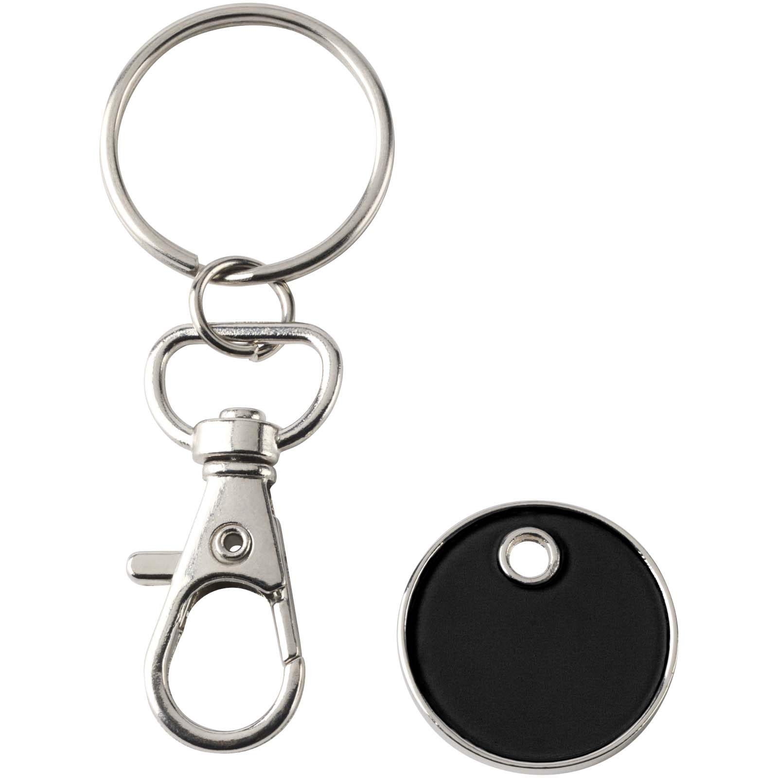 Brelok Rory z kolorowym żetonem do wózka został zaprojektowany tak, aby pasował do większości wózków sklepowych i umożliwiał ich otwieranie bez użycia monet lub żetonów. Średnica monety 1 euro/funt.