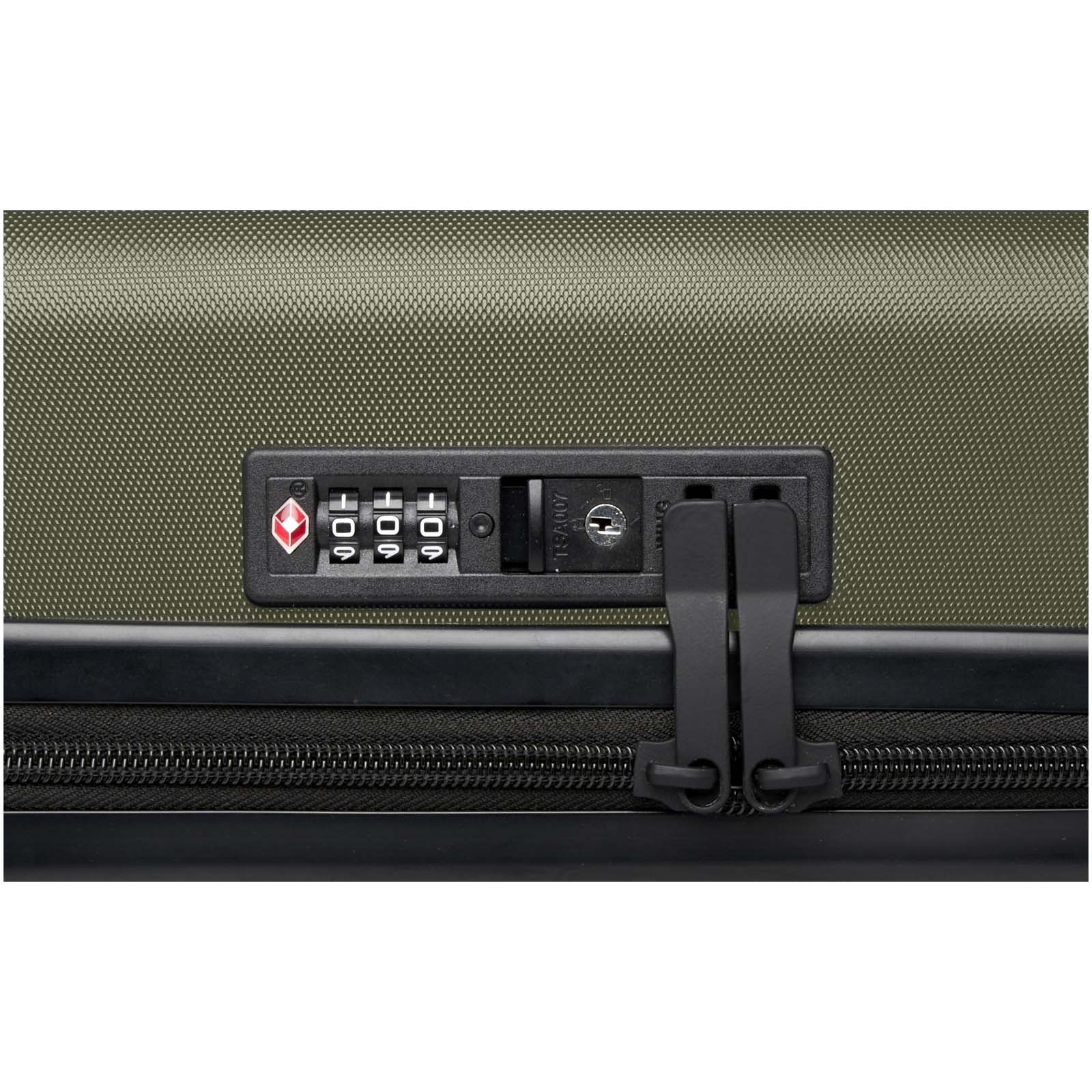 Twarda walizka na kółkach Rover o wysokości 51 cm, wyprodukowana z odpornych na uderzenia tworzyw sztucznych pochodzących z recyklingu i wyściółki RPET to produkt zarówno wysokiej jakości, jak i przyjazny dla środowiska. Posiada aluminiową ramę z podwójnymi rurkami, 4-kołowy mechanizm obrotowy 360 stopni, zintegrowany zamek szyfrowy TSA, wygodny uchwyt zapewniający komfort i wewnętrzne przegródki organizacyjne. Może być przewożona jako bagaż podręczny w większości głównych linii lotniczych. Walizka posiada certyfikat GRS, łącznie z nadrukiem, co sprawia, że jest wyborem bardziej przyjaznym dla środowiska.