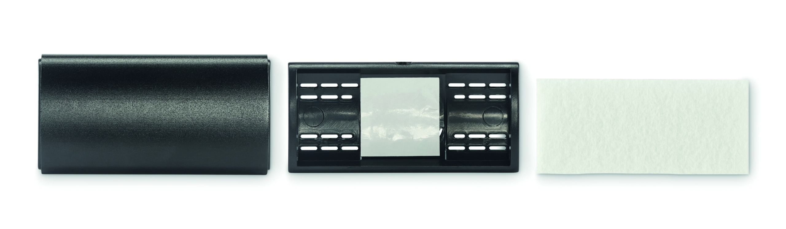 Odświeżacz powietrza z aluminiową pokrywą i klipsem ABS. Zawiera wkładkę filcową RPET na płyn zapachowy (brak w zestawie).