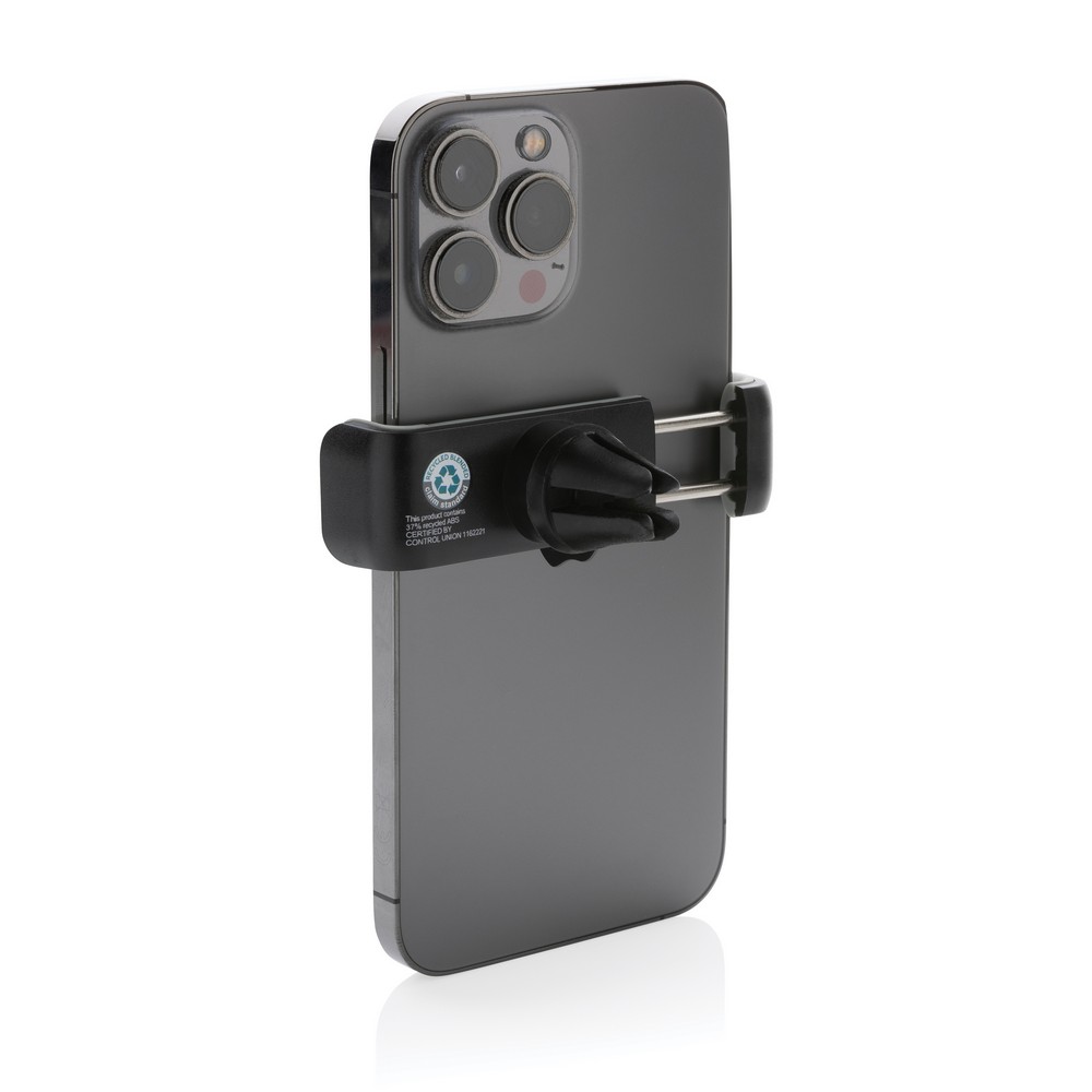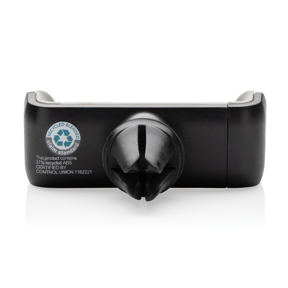Regulowany samochodowy uchwyt do telefonu, mocowanie do wentylacji, obrotowy (360 stopni), wykonany w 37% z materiałów z recyklingu, mechanizm ze stali nierdzewnej wewnątrz, ślad węglowy produktu: 0,13 kg CO2