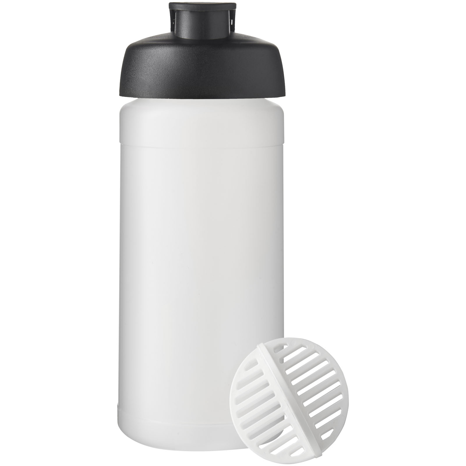 Jednościenny bidon z shakerem do łatwego mieszania koktajli białkowych. Posiada pokrywę zapobiegającą wylewaniu się płynów z wieczkiem typu flip. Pojemność 500 ml. Wyprodukowano w Wielkiej Brytanii. Produkt wolny od BPA.